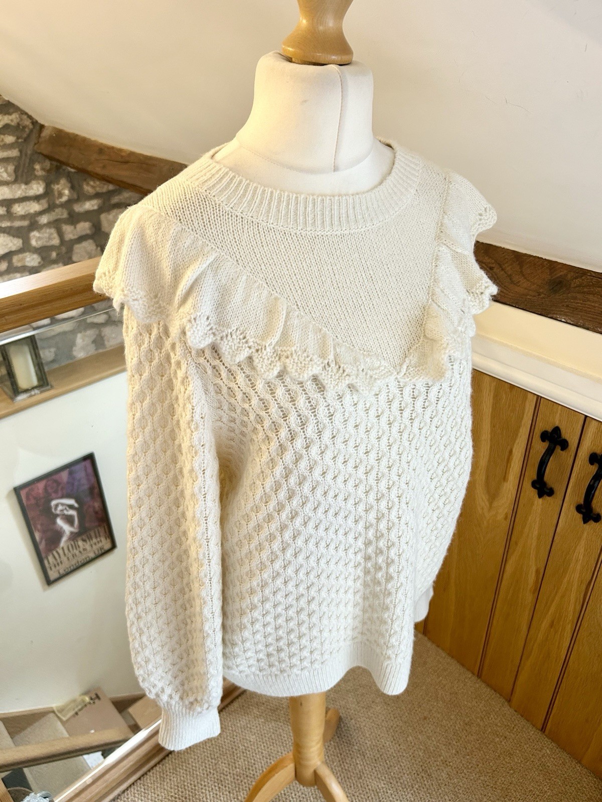 как выглядит And/Or Evelyn Frill Knit Jumper Cream Size 14 BNWT RRP 59 фото