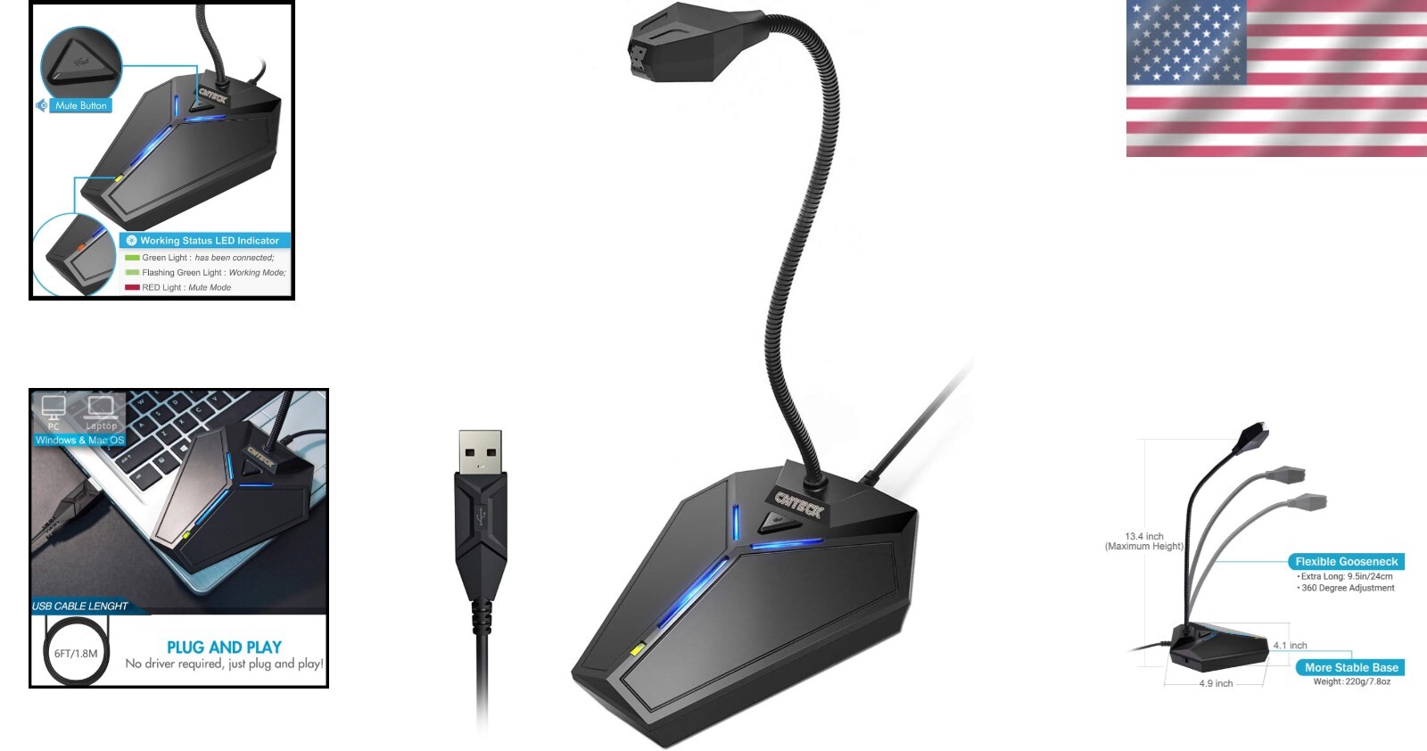 USB Omnidirectional Microphone with Mute Button LED - Ideal for Streaming