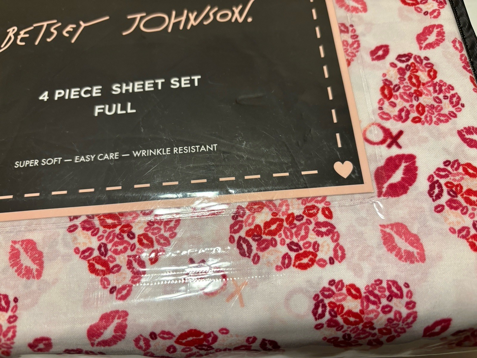 NEW BETSEY JOHNSON Lipstick Betsey Hearts Polyester Microfiber FULL Sheet Set