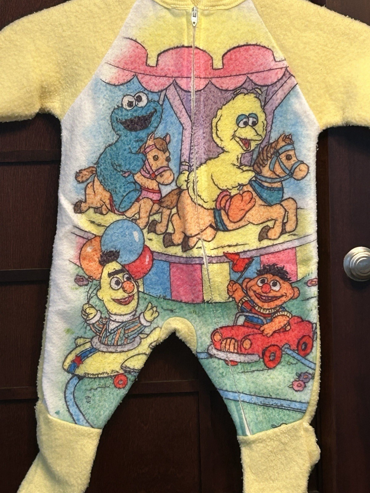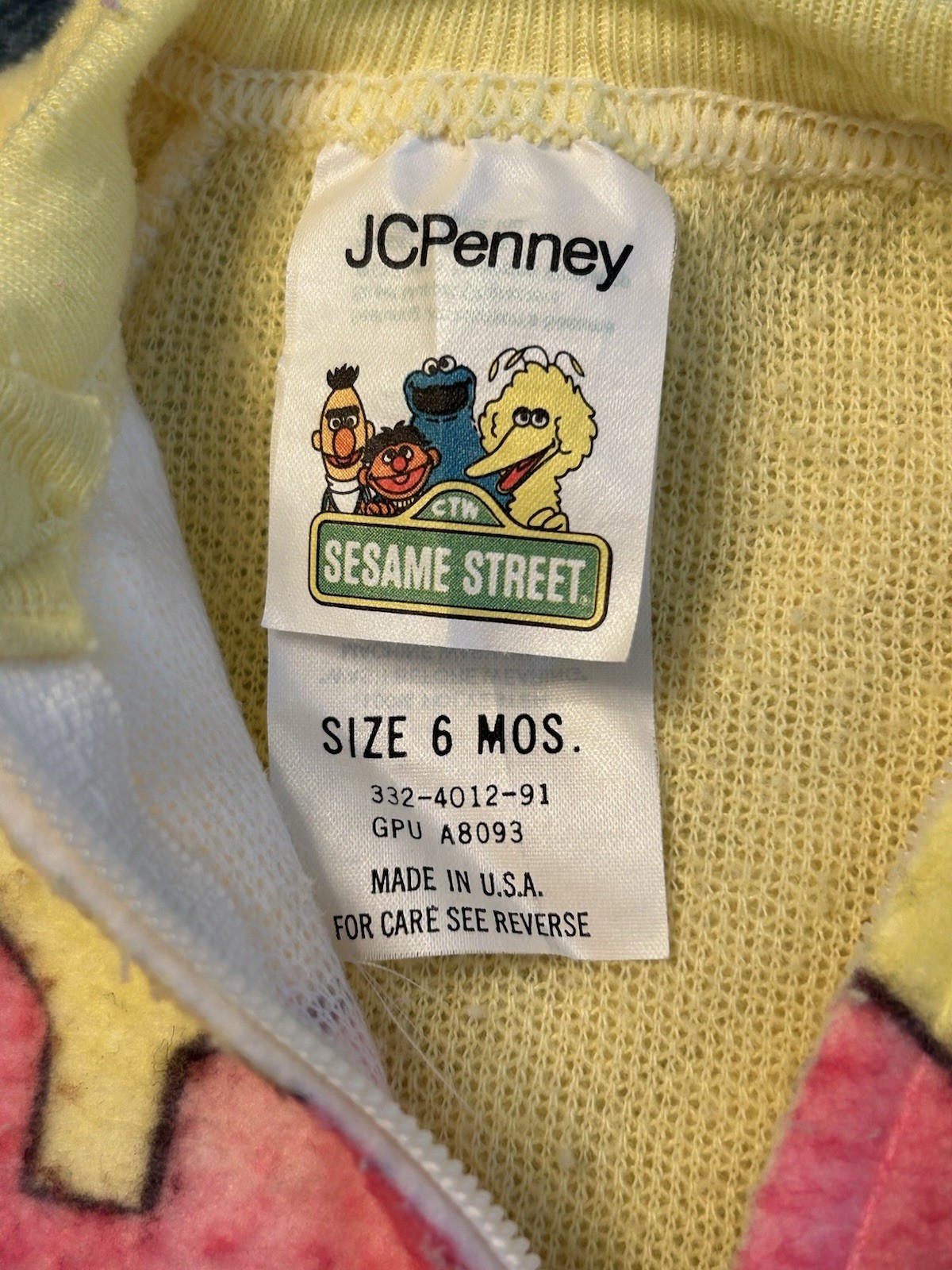 VTG Baby Yellow Sesame Street Footy Pajamas Size 6 Months JC Penny