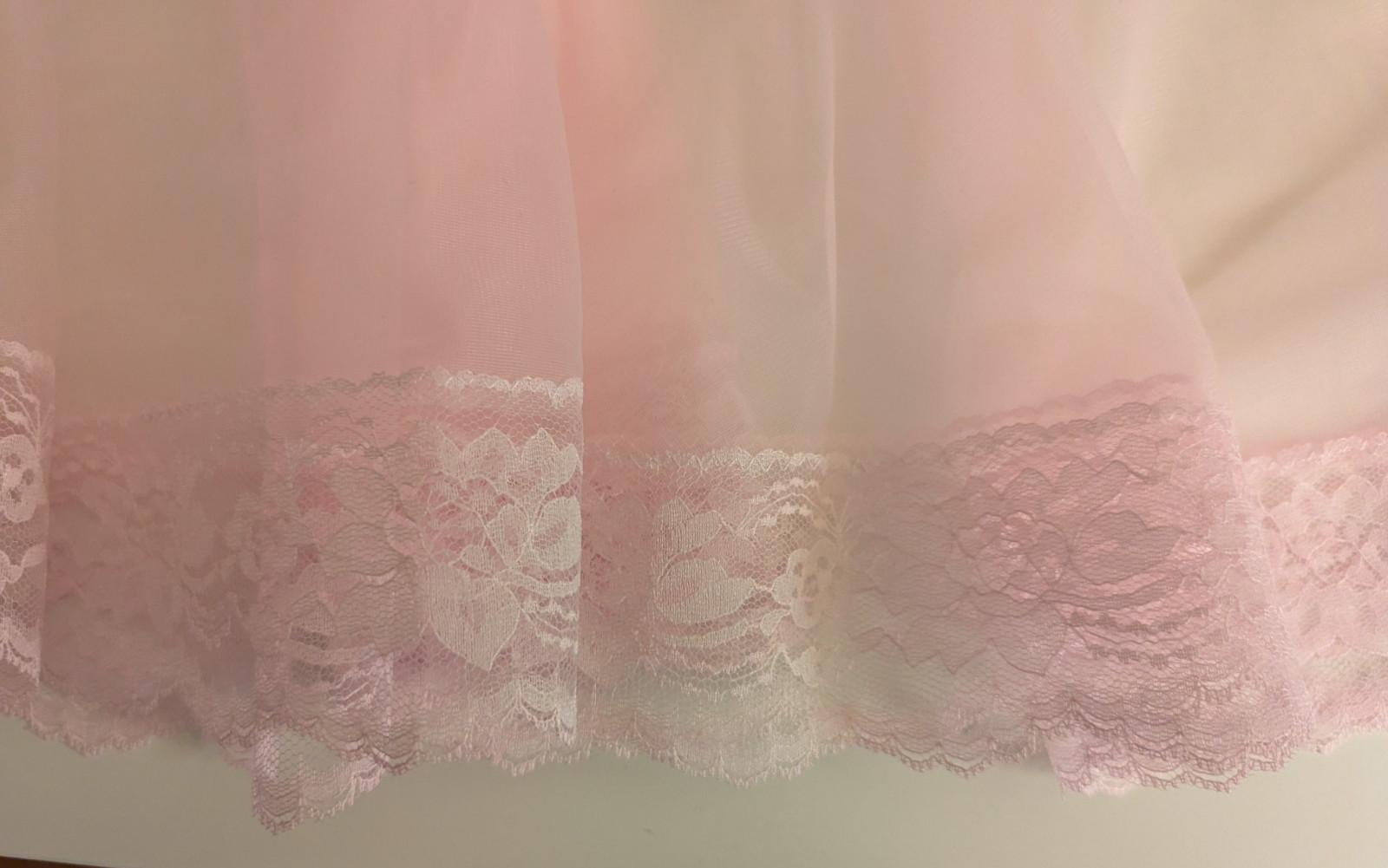 как выглядит Sheer PINK Nylon LACY HALF SLIP 36-48" Waist VERY FULL Slip Length 14" фото