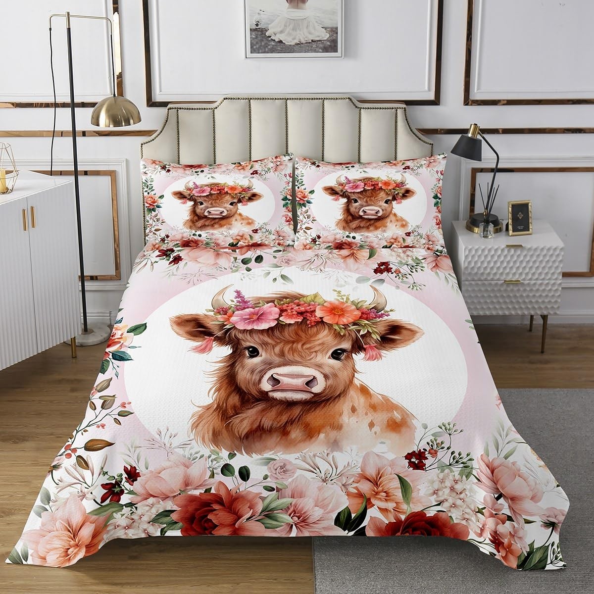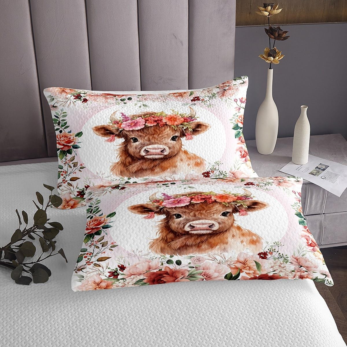 Cute Highland Cow Bedspread Twin Size Cartoon Animal Quilted Coverlet for Boy...