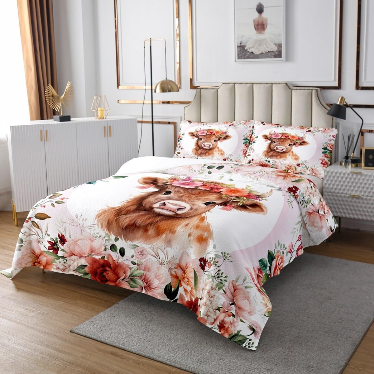 как выглядит Cute Highland Cow Bedspread Twin Size Cartoon Animal Quilted Coverlet for Boy... фото
