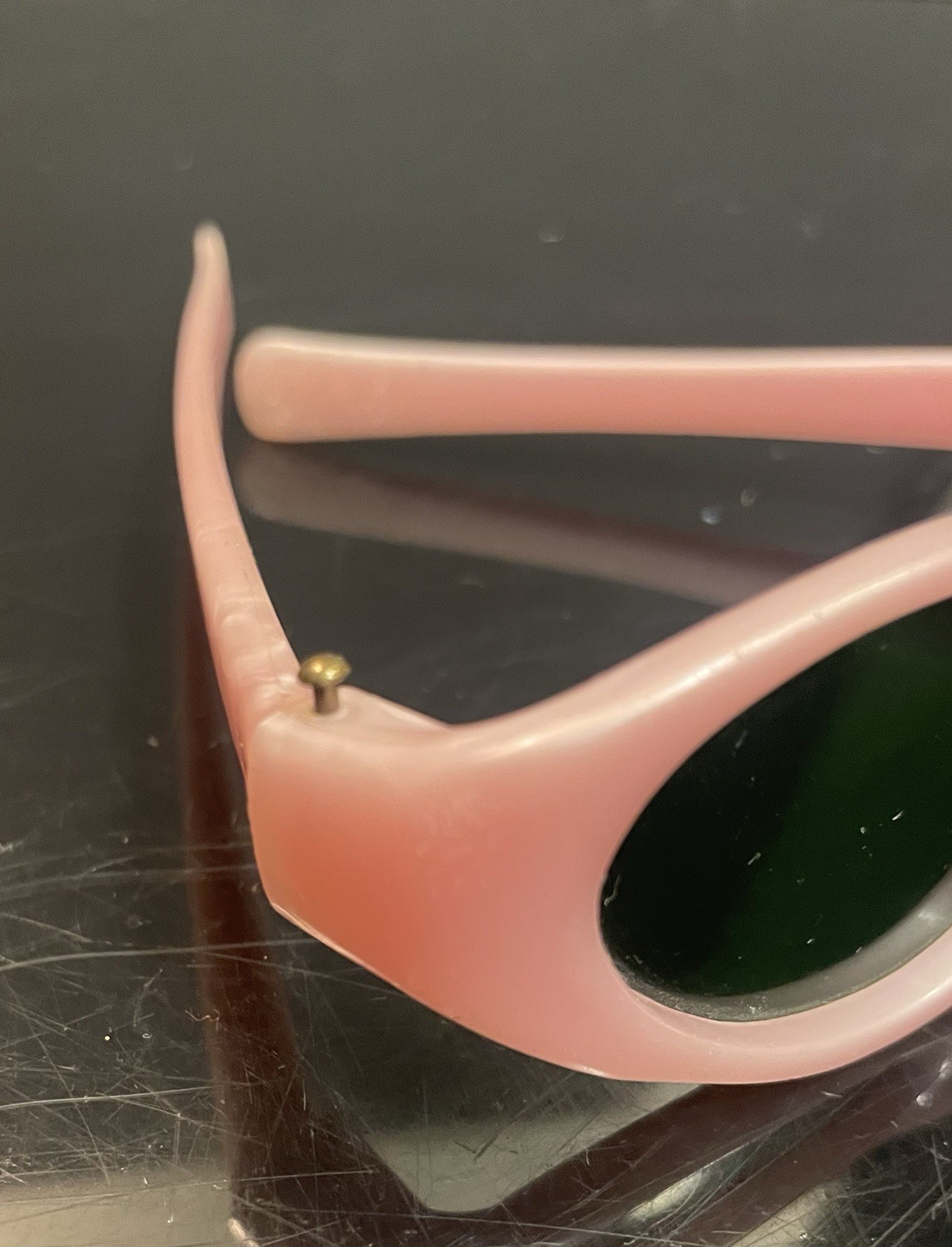 VTG 1950s Pink Cat-Eye Sunglasses Green Lens Straight Arms Rockabilly Retro