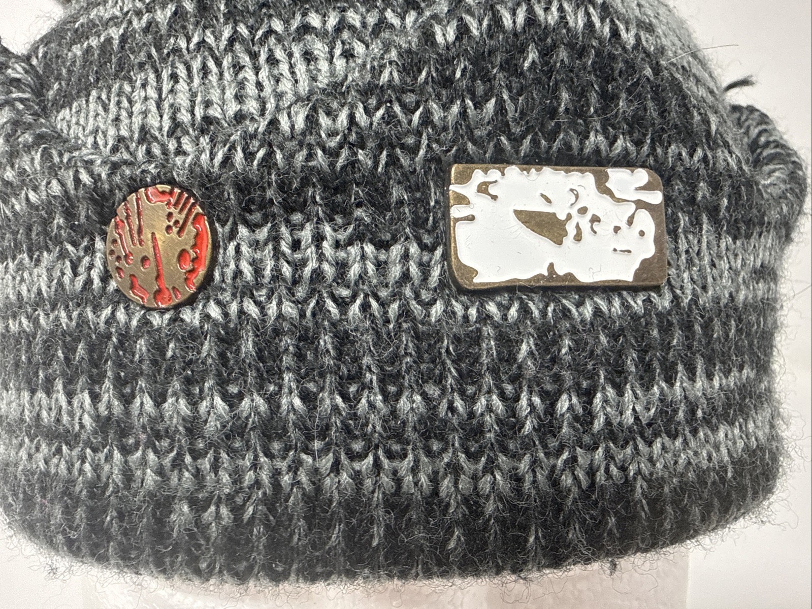 как выглядит Jughead Riverdale Hot Topic Exclusive Gray Knit Beanie w Novelty Pins Mens OS фото