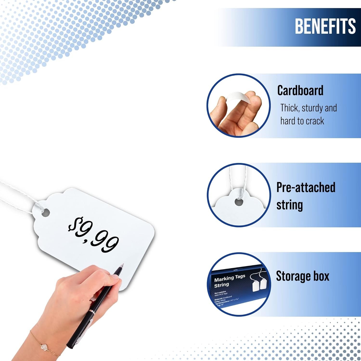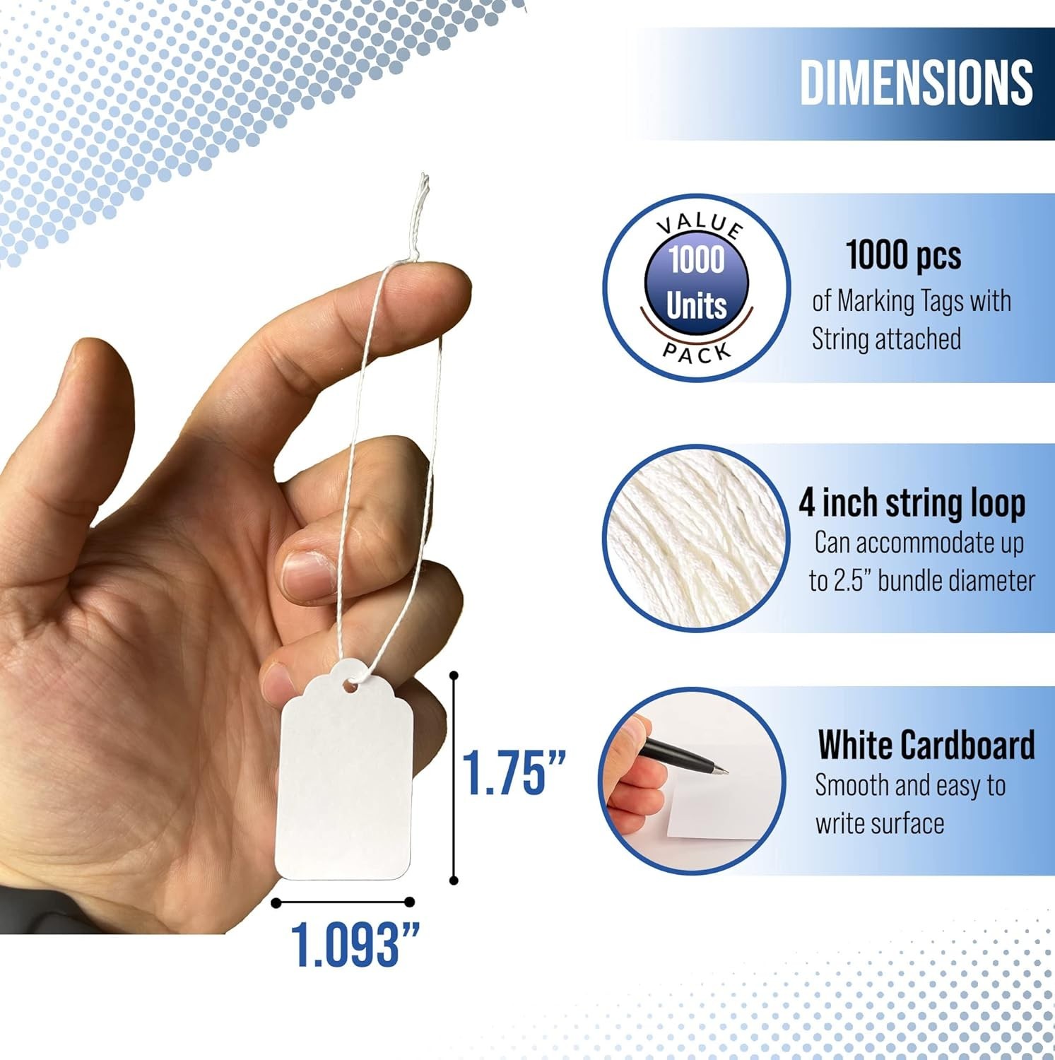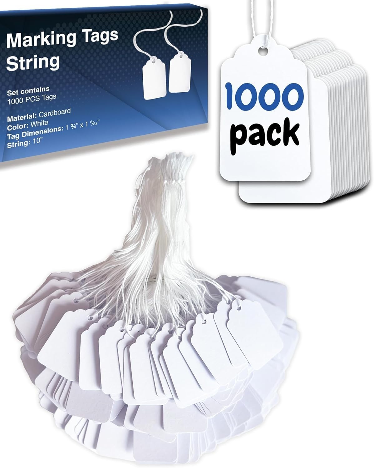 1000 Pcs White Price Tags with String Attached, Hang Tags for Product, Labeli...