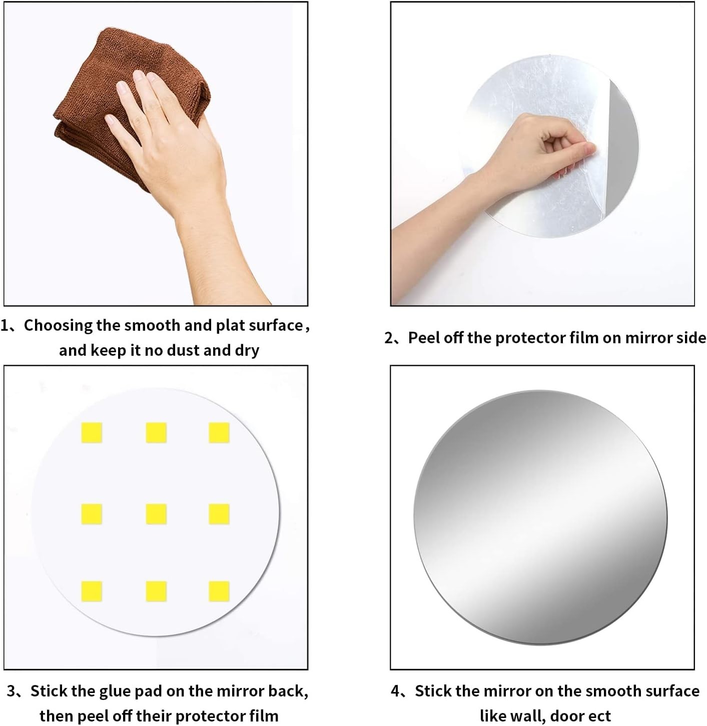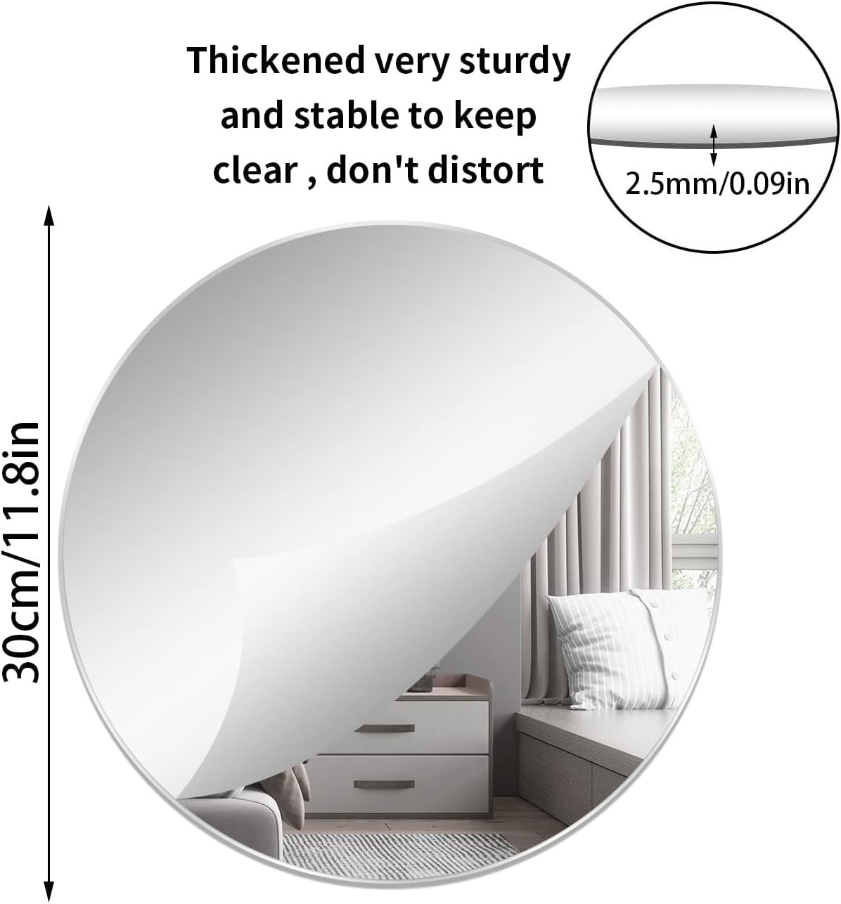 12'' Round Wall Mirror Tiles High Clear Reflecticon Self Adhesive Acrylic Mir...