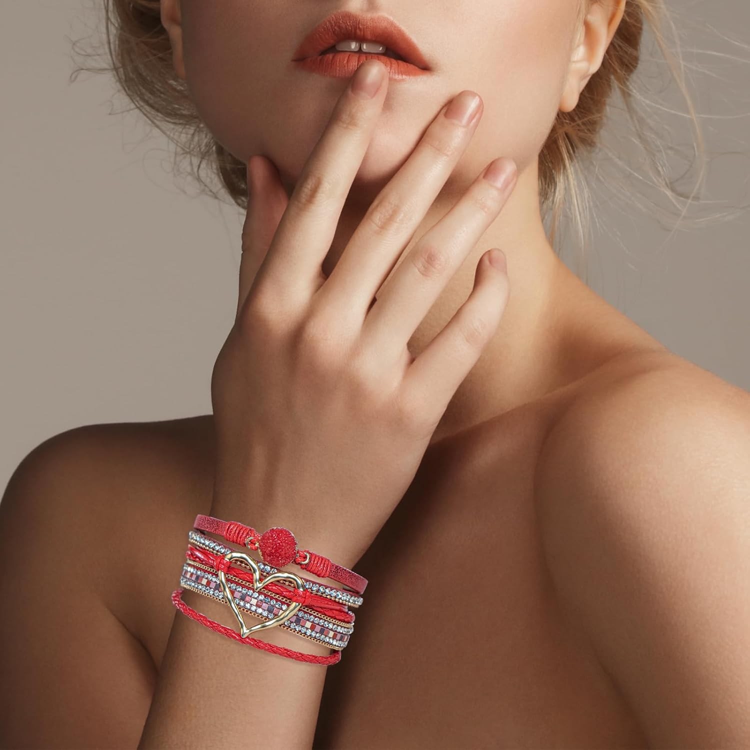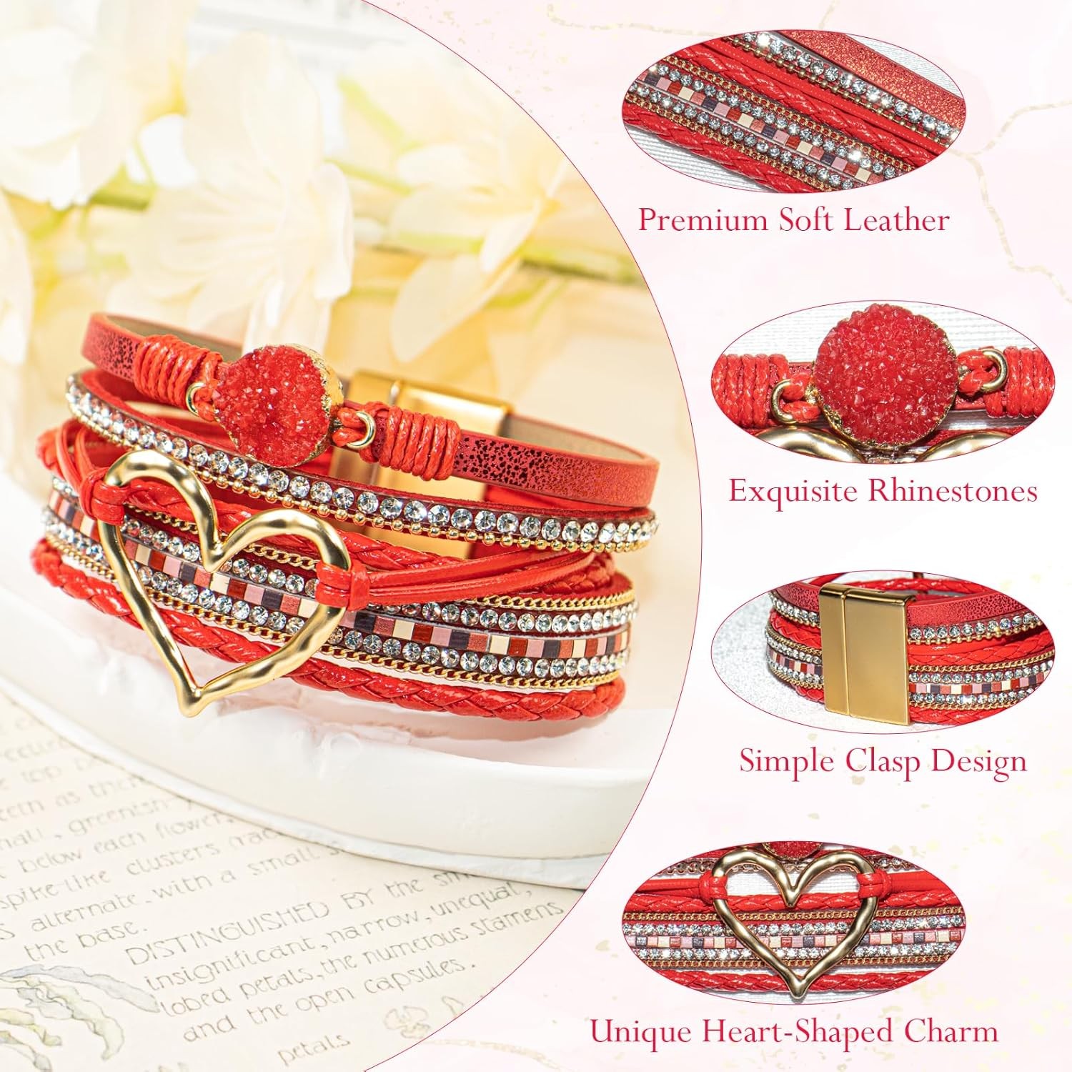 Leather Wrap Bracelet for Women, Boho Cuff Bracelet with Strong Clasp, Multi-Lay