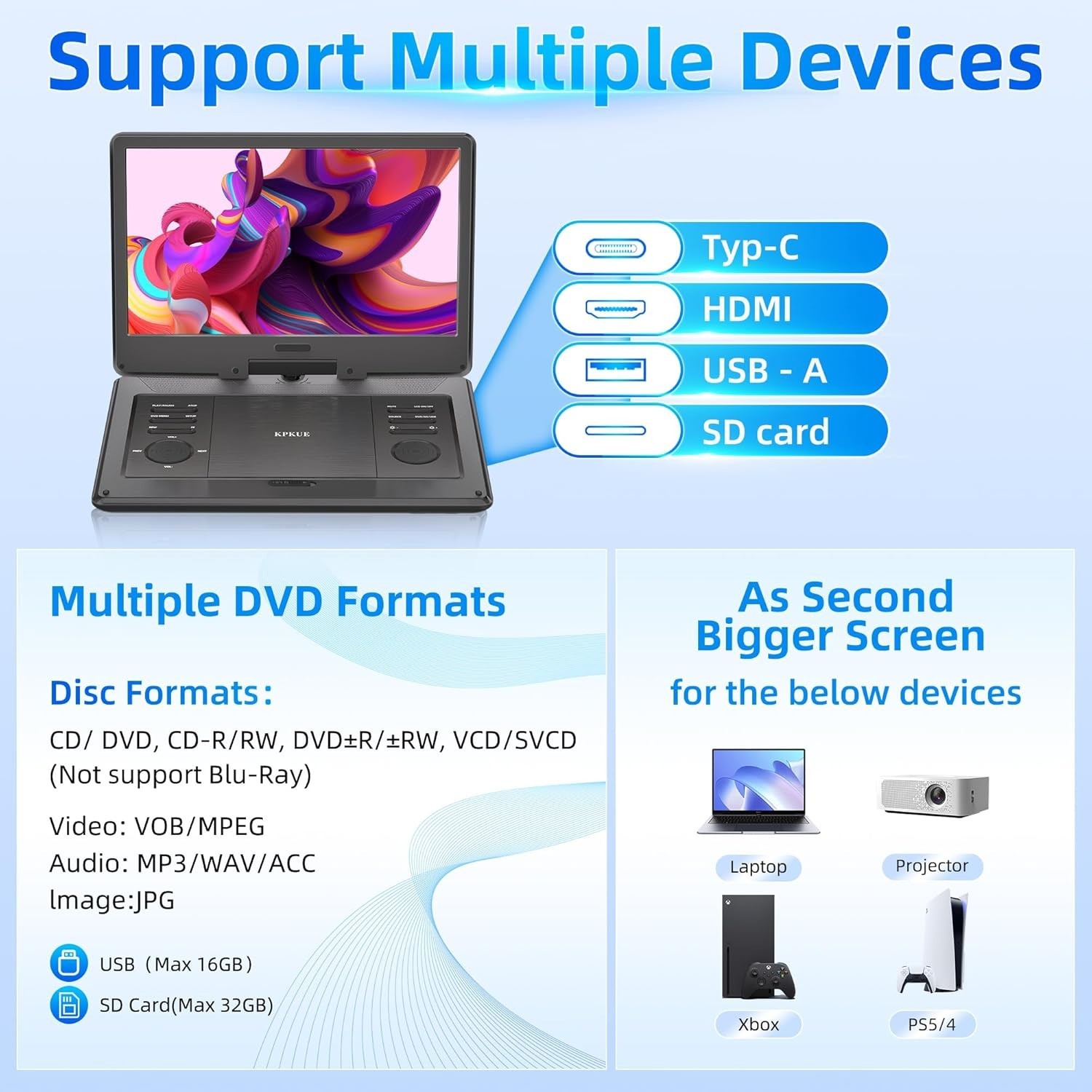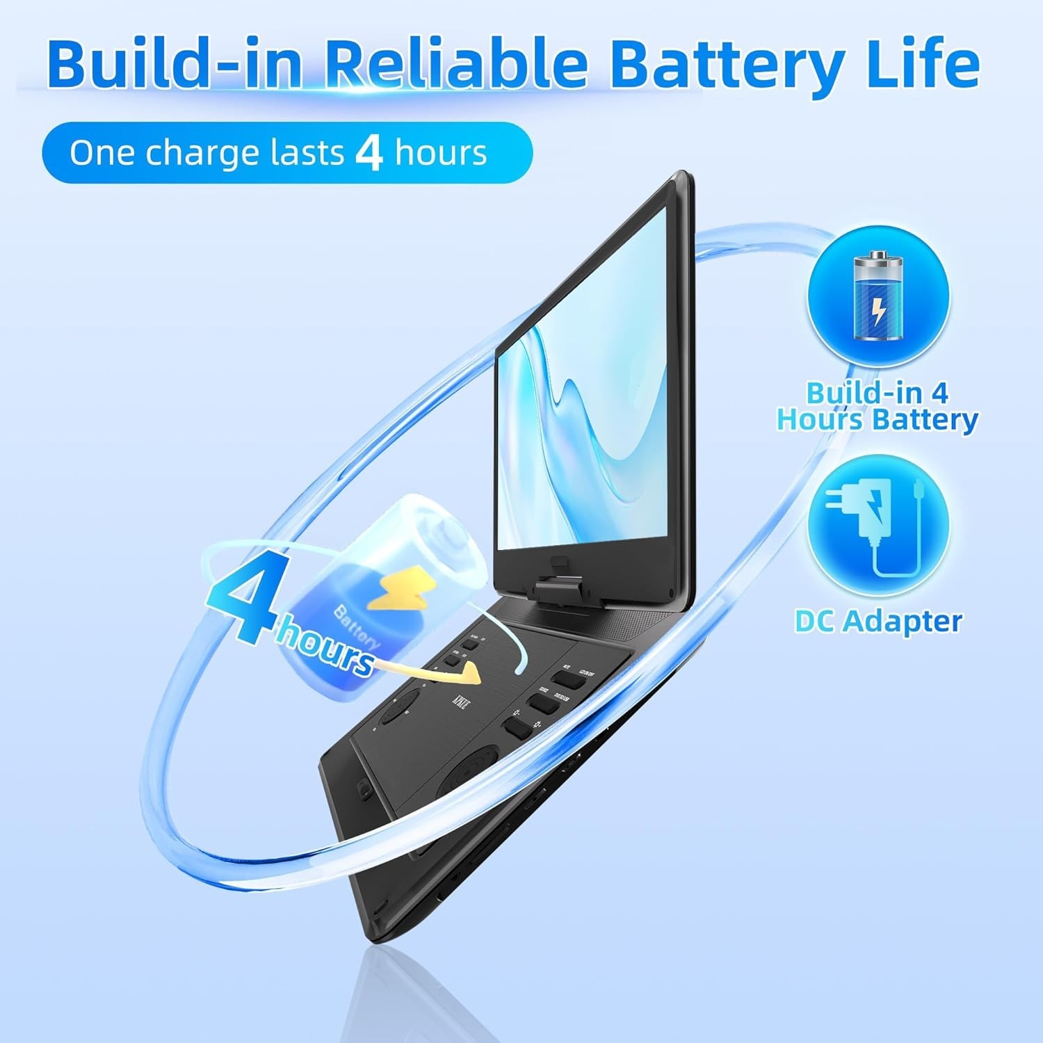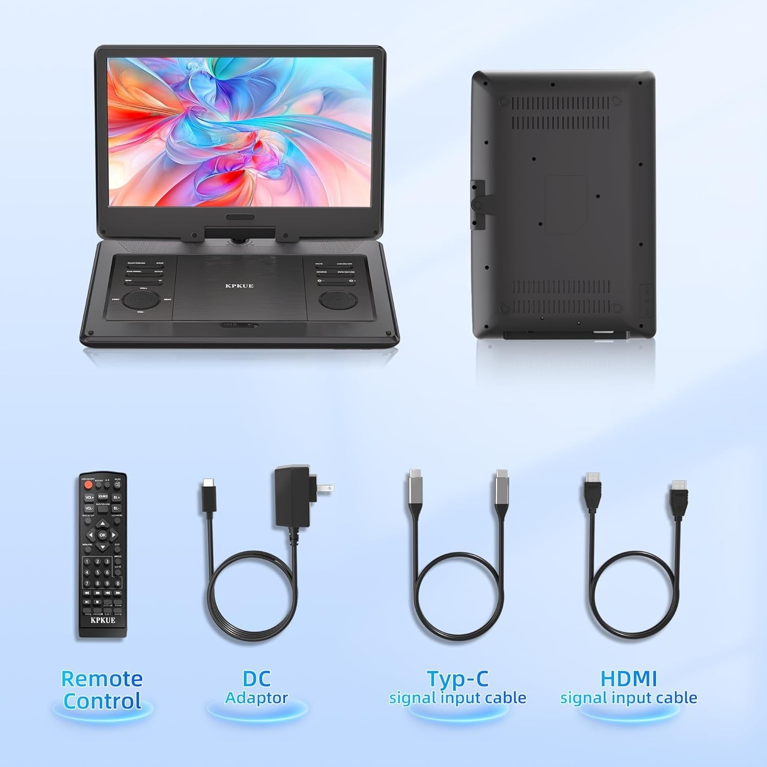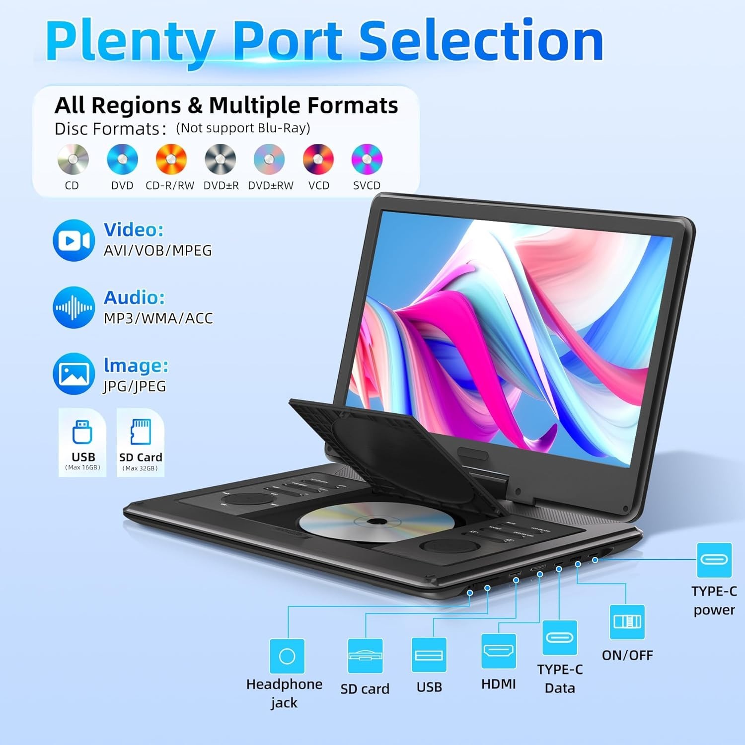 15.6 FHD Portable DVD Player with 13.3 Swivel Screen, 1920 1080P Car Player