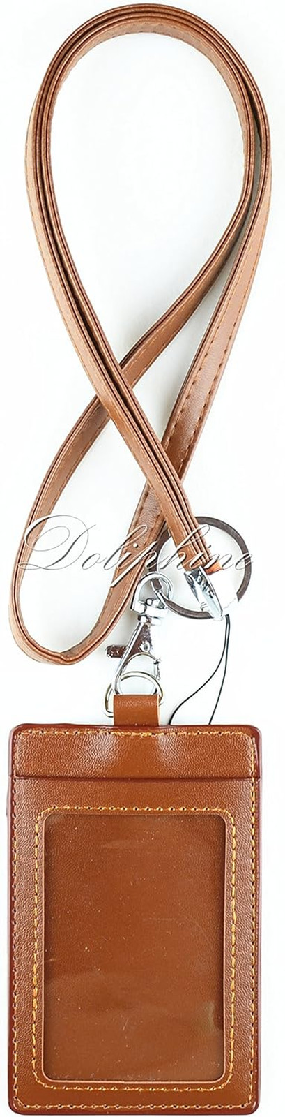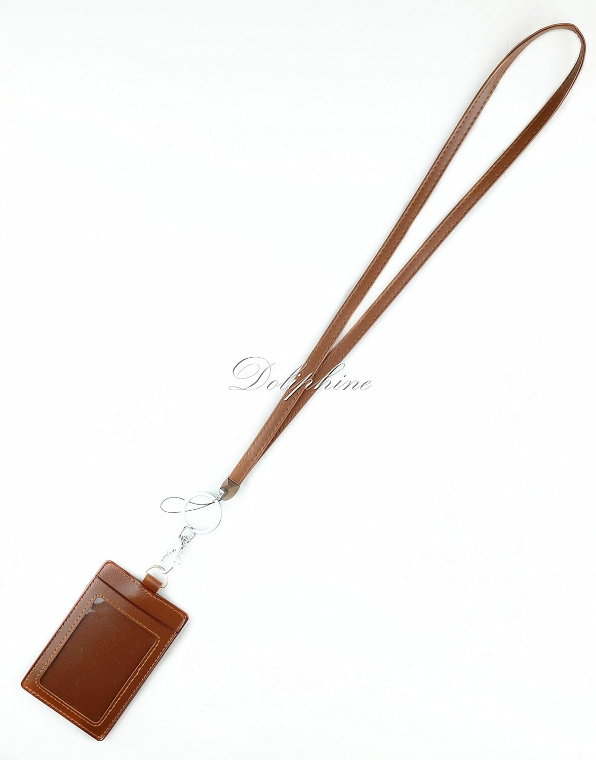 Necklace PU Leather Lanyard with 4 Layers ID Badge Holder Brown Vertical