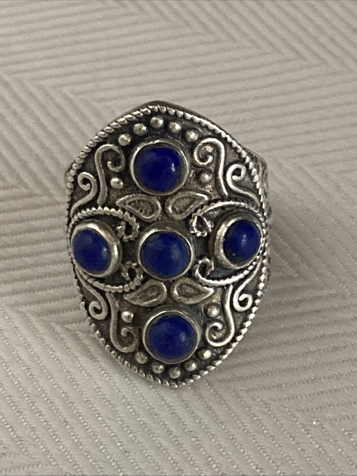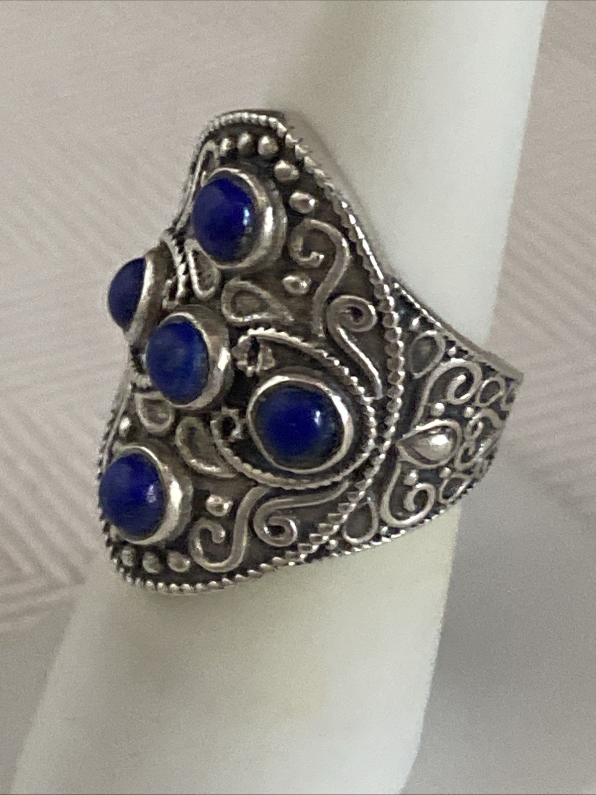 Southwest Style Beautiful Sterling Silver Blue Lapis Lazuli Ring Size 6