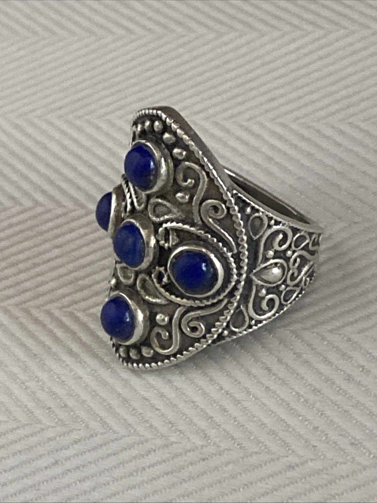 как выглядит Southwest Style Beautiful Sterling Silver Blue Lapis Lazuli Ring Size 6 фото