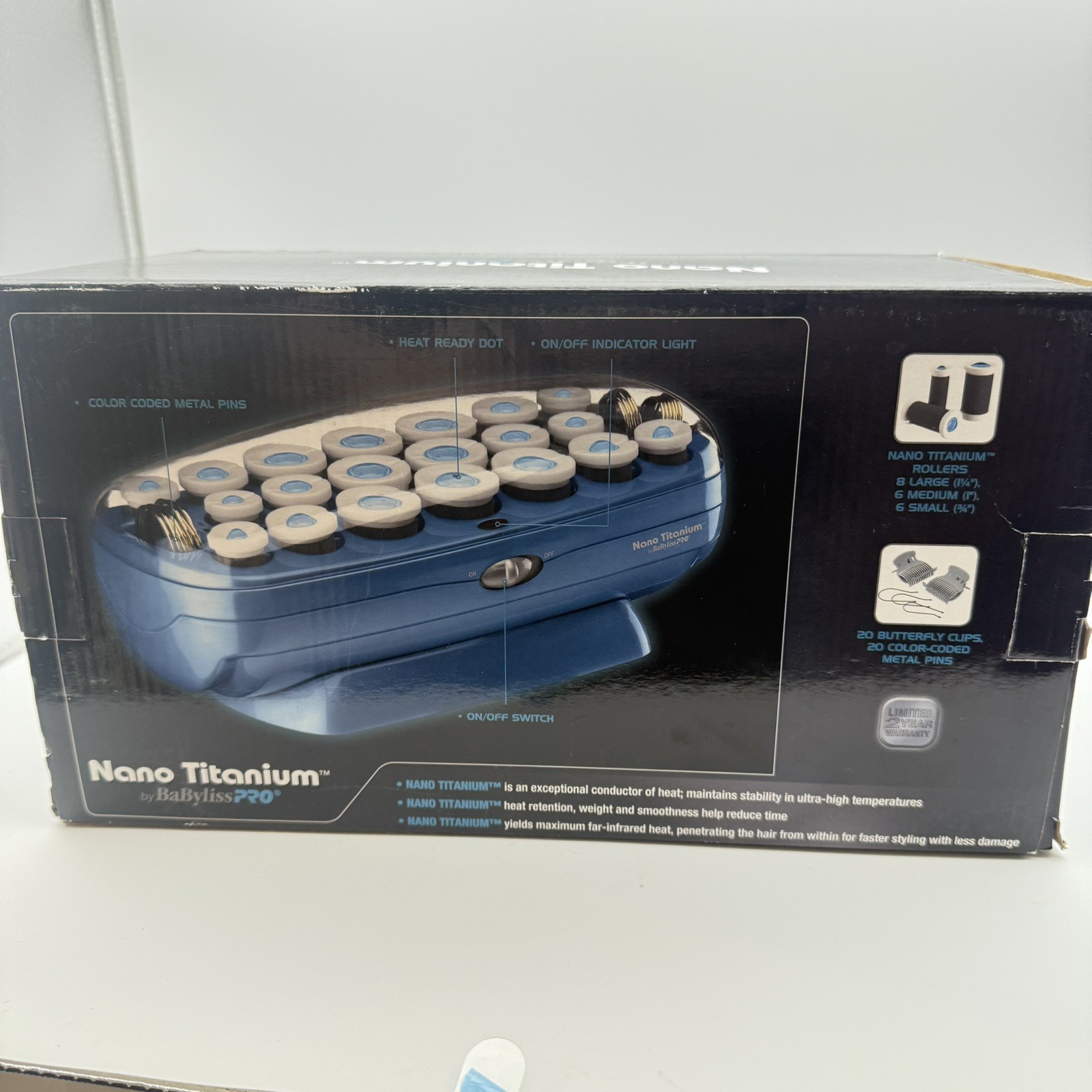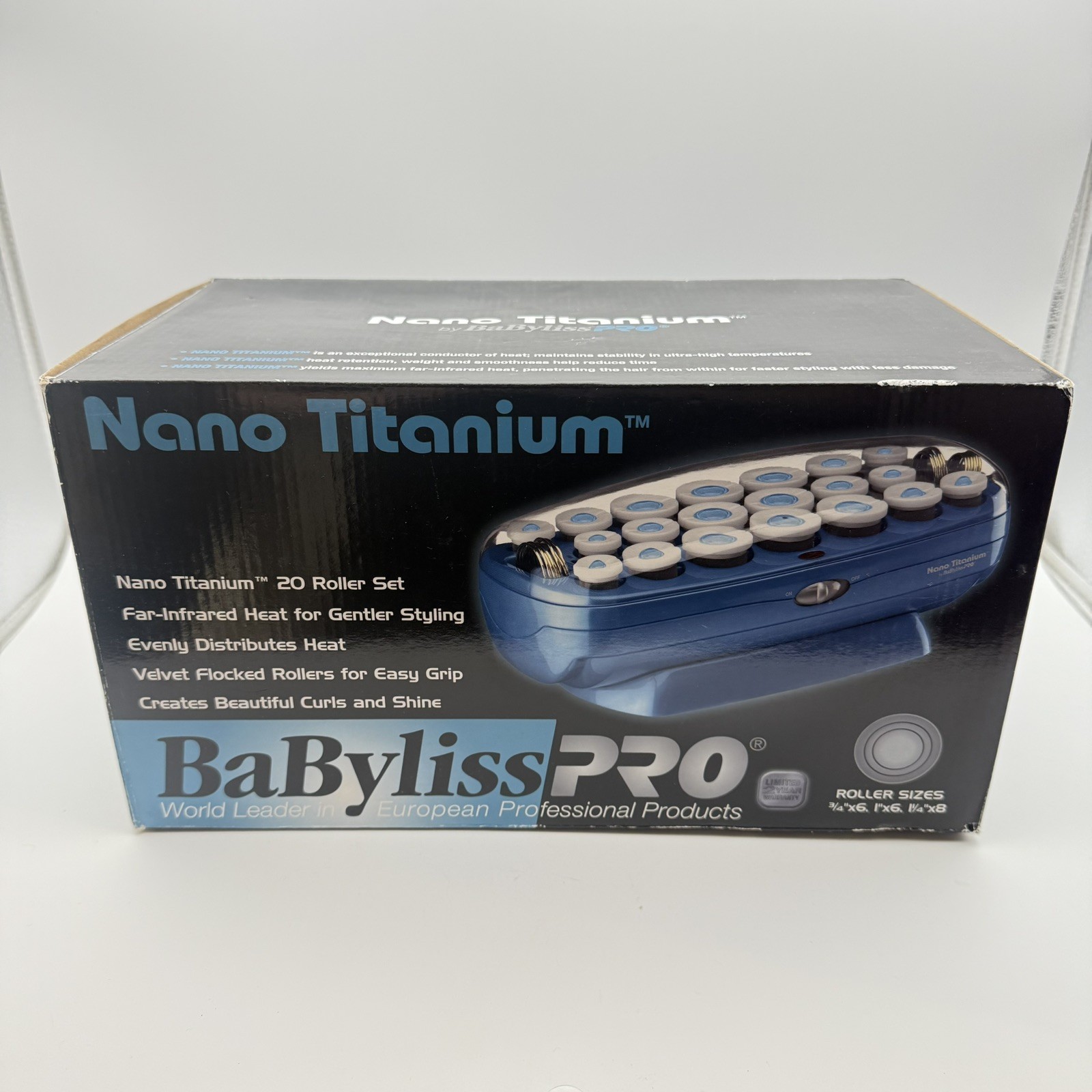 BaByliss PRO Nano Titanium Hot Rollers 20 Piece Set Blue Multiple Sizes