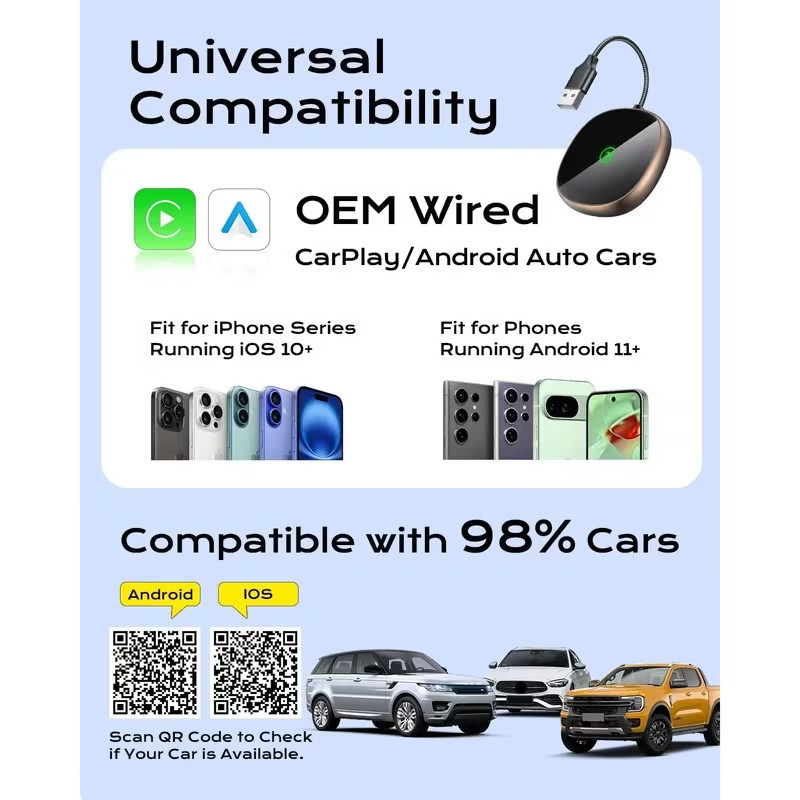 Особенности: 5GHZ WiFi, Andriod Auto, Bluetooth, plug and play, Wireless Carplay