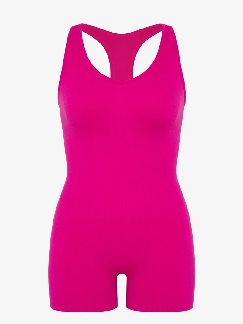 Savage X Fenty Seamless Sport V-Neck Romper, Style XO2500510, Sz S, Rogue Pink