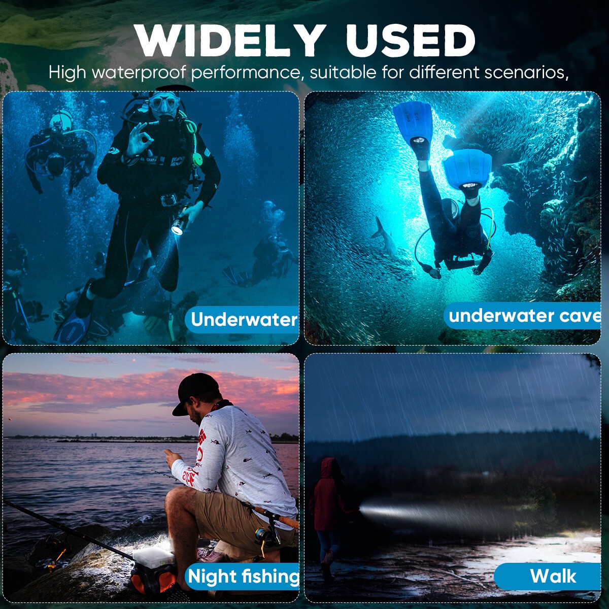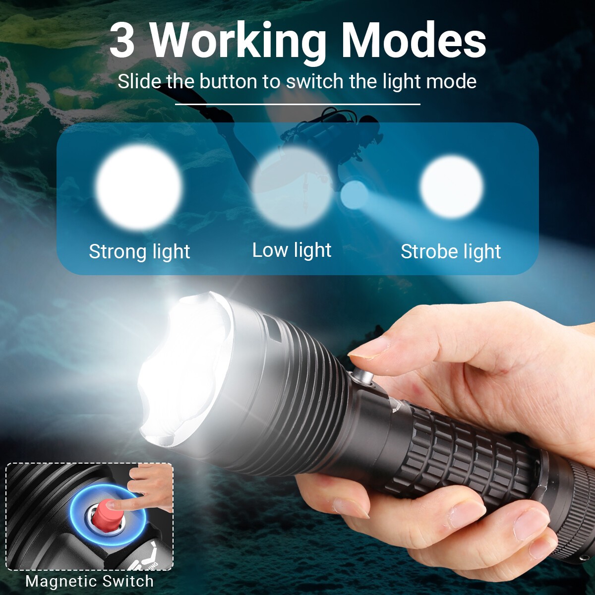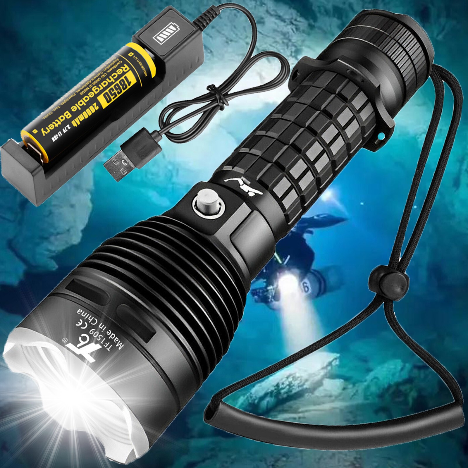 Package: 1x Diving Flashlight Set + 1x USB Charger