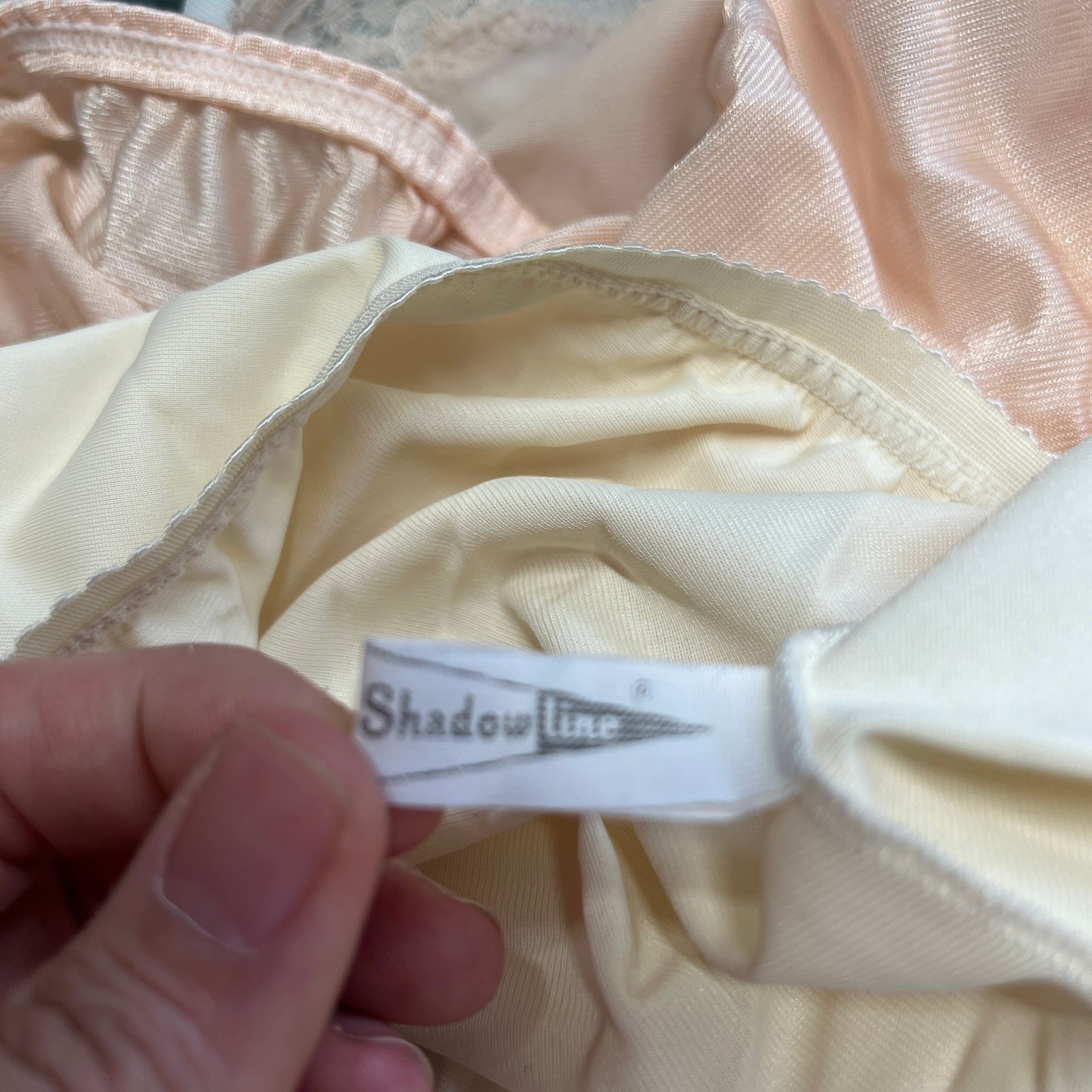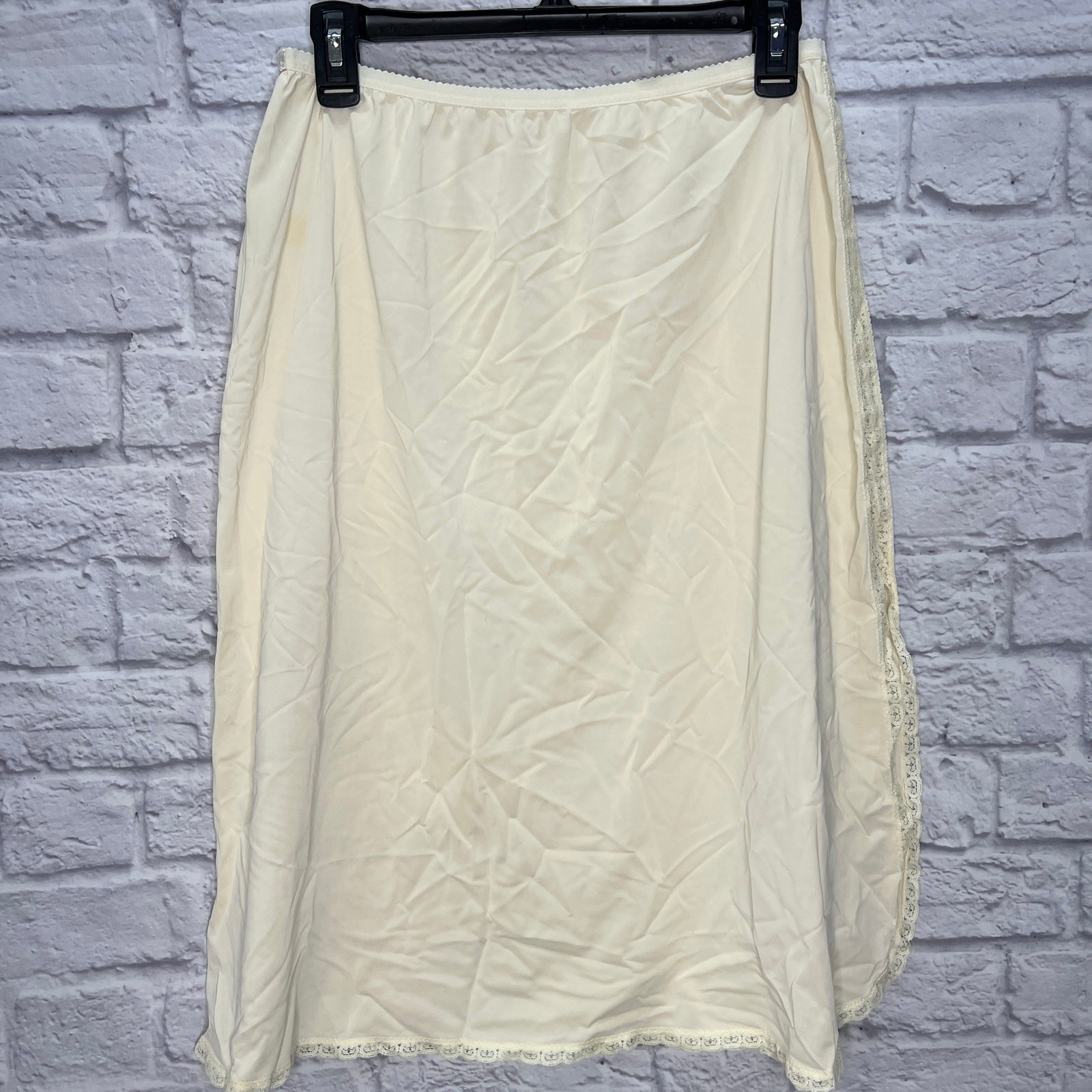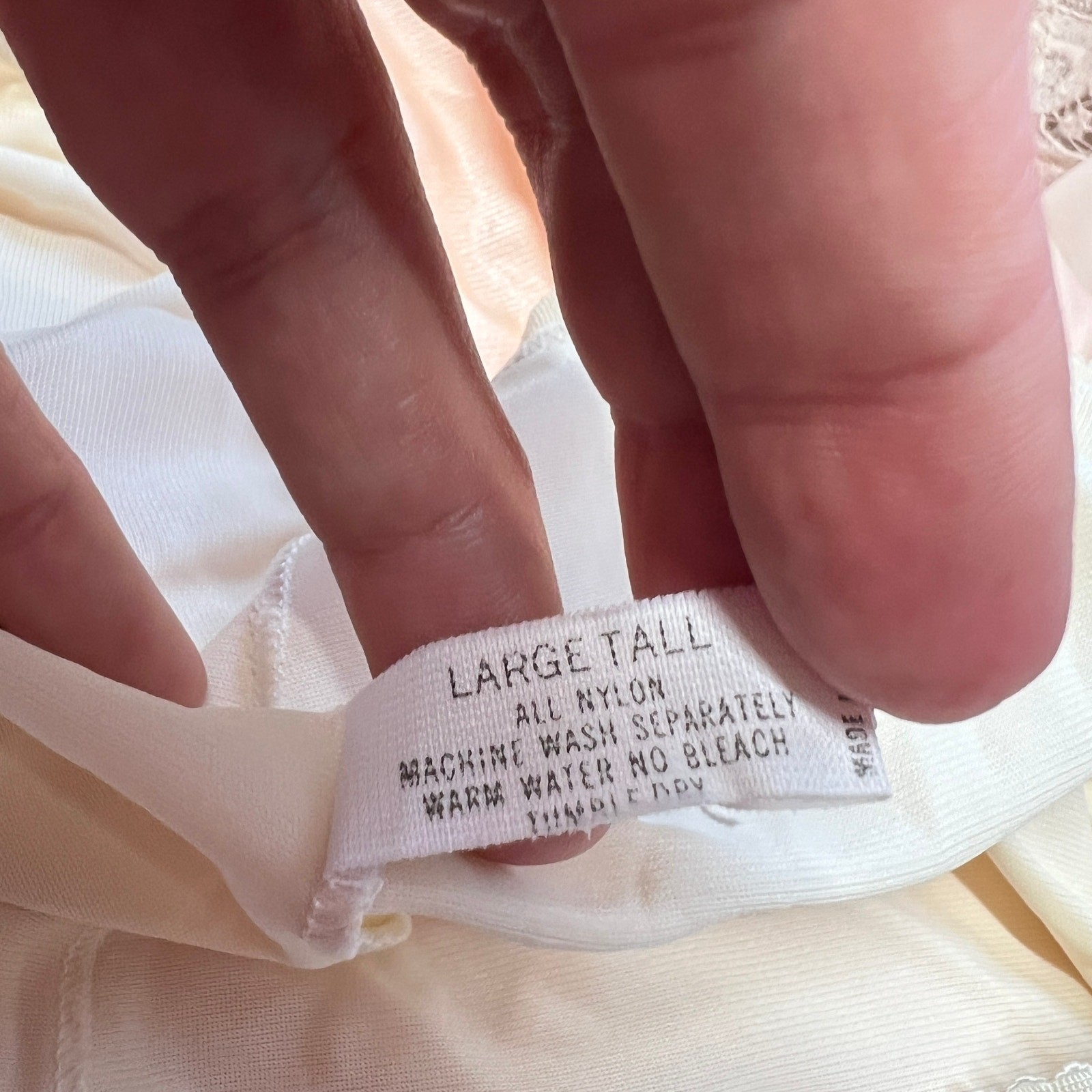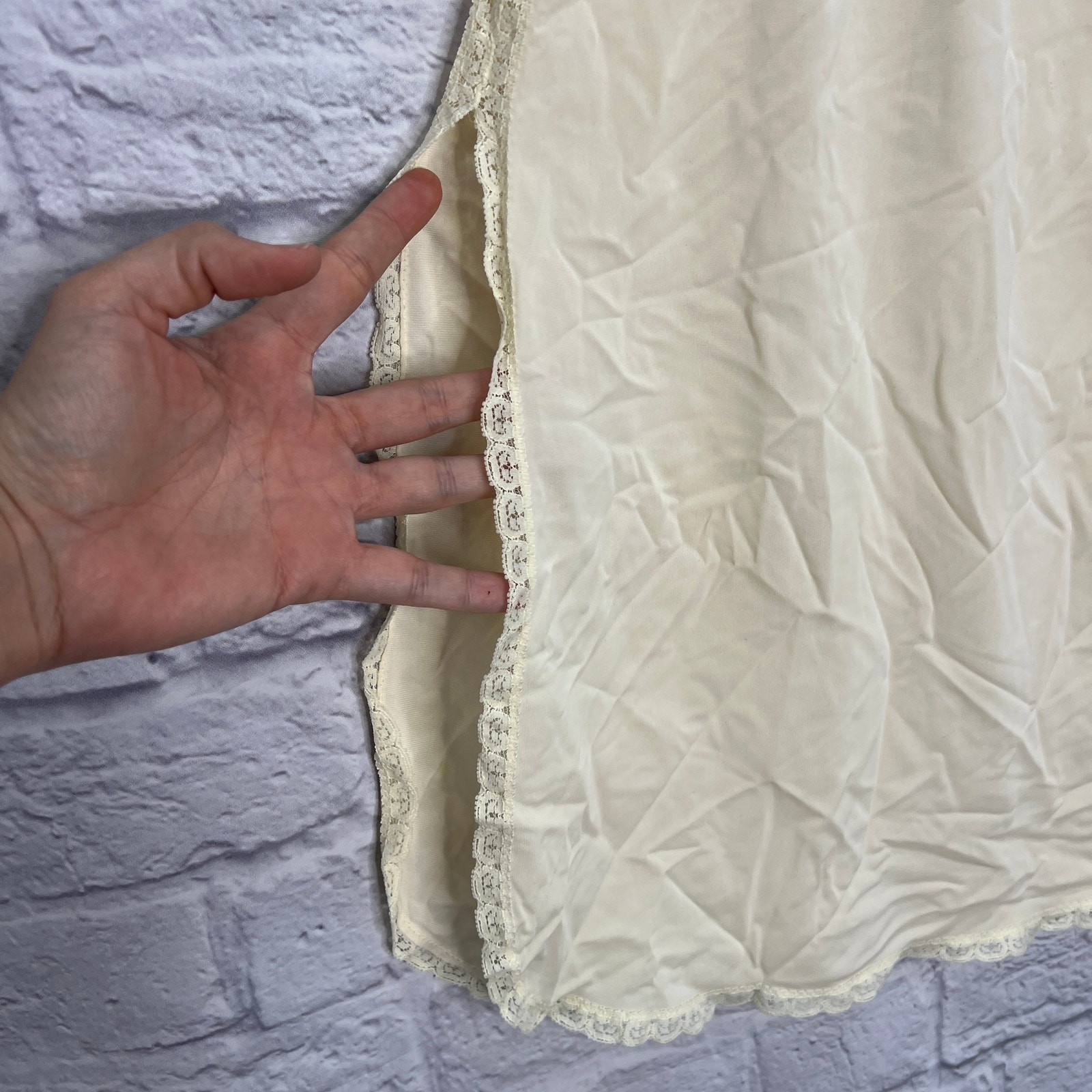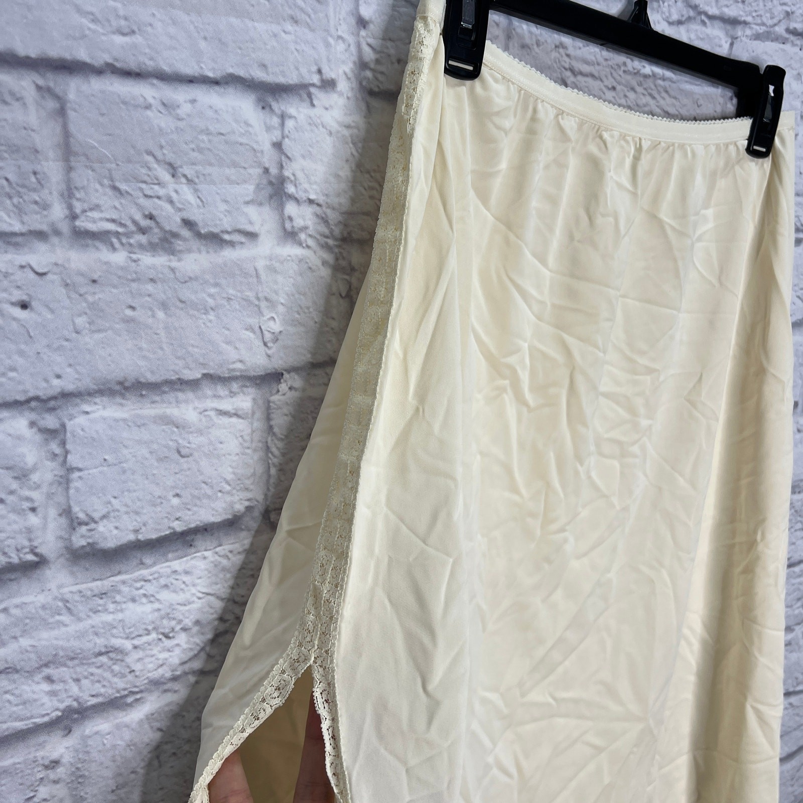 как выглядит Vintage Shadowline Half Slip Nylon Pillow Tab Size L Tall Ivory Lace Detail 26" фото