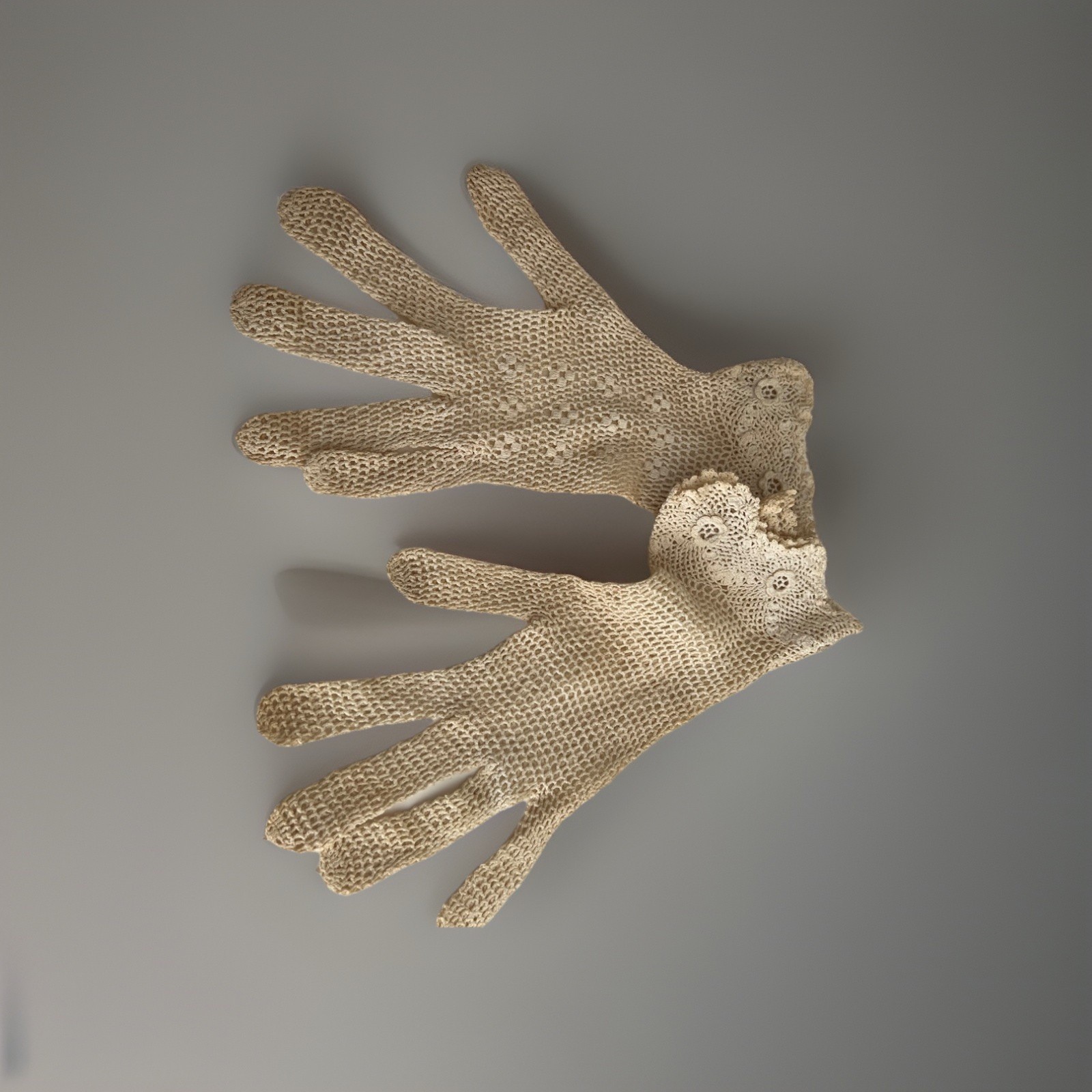 как выглядит Antique Cream Floral Crochet Gloves Medium фото
