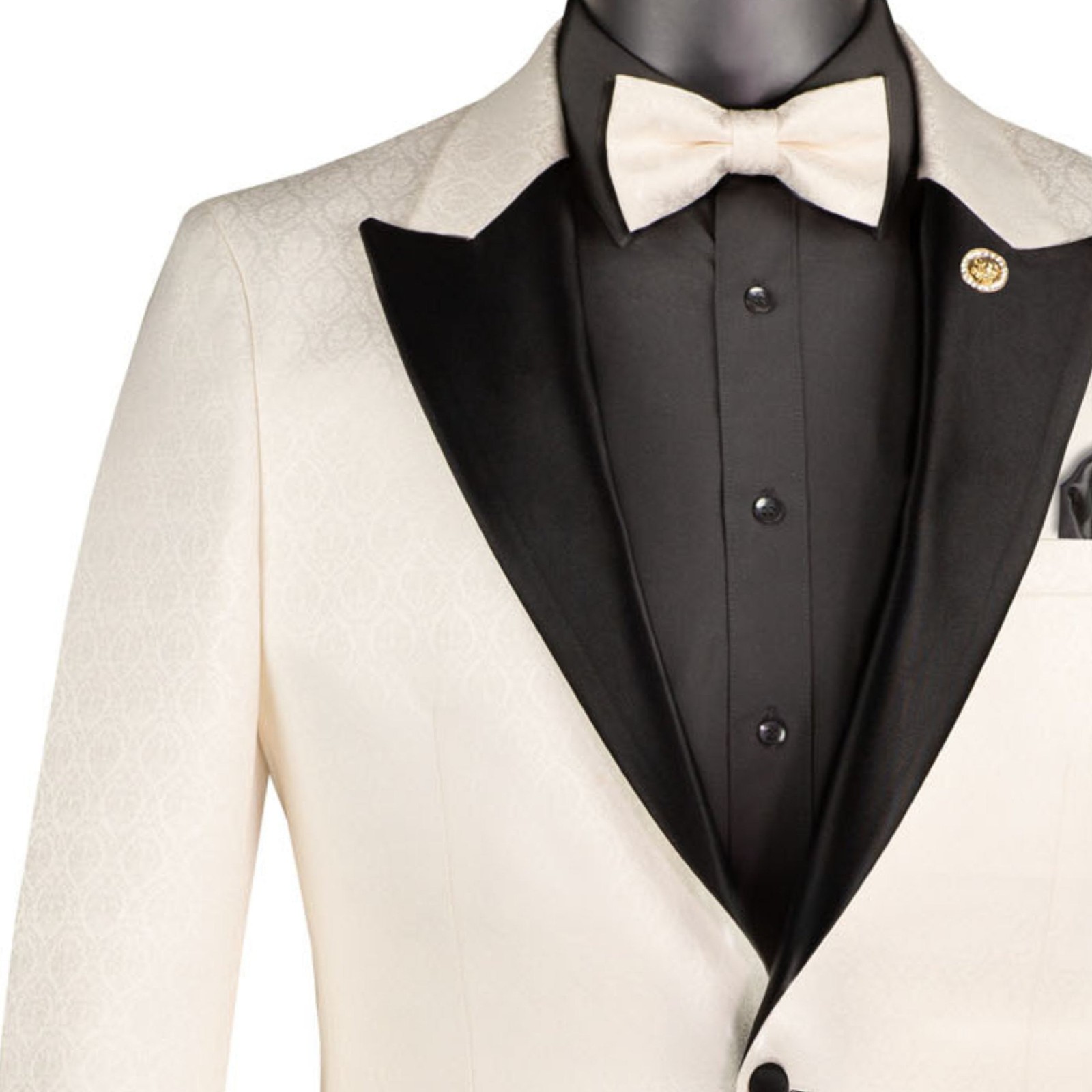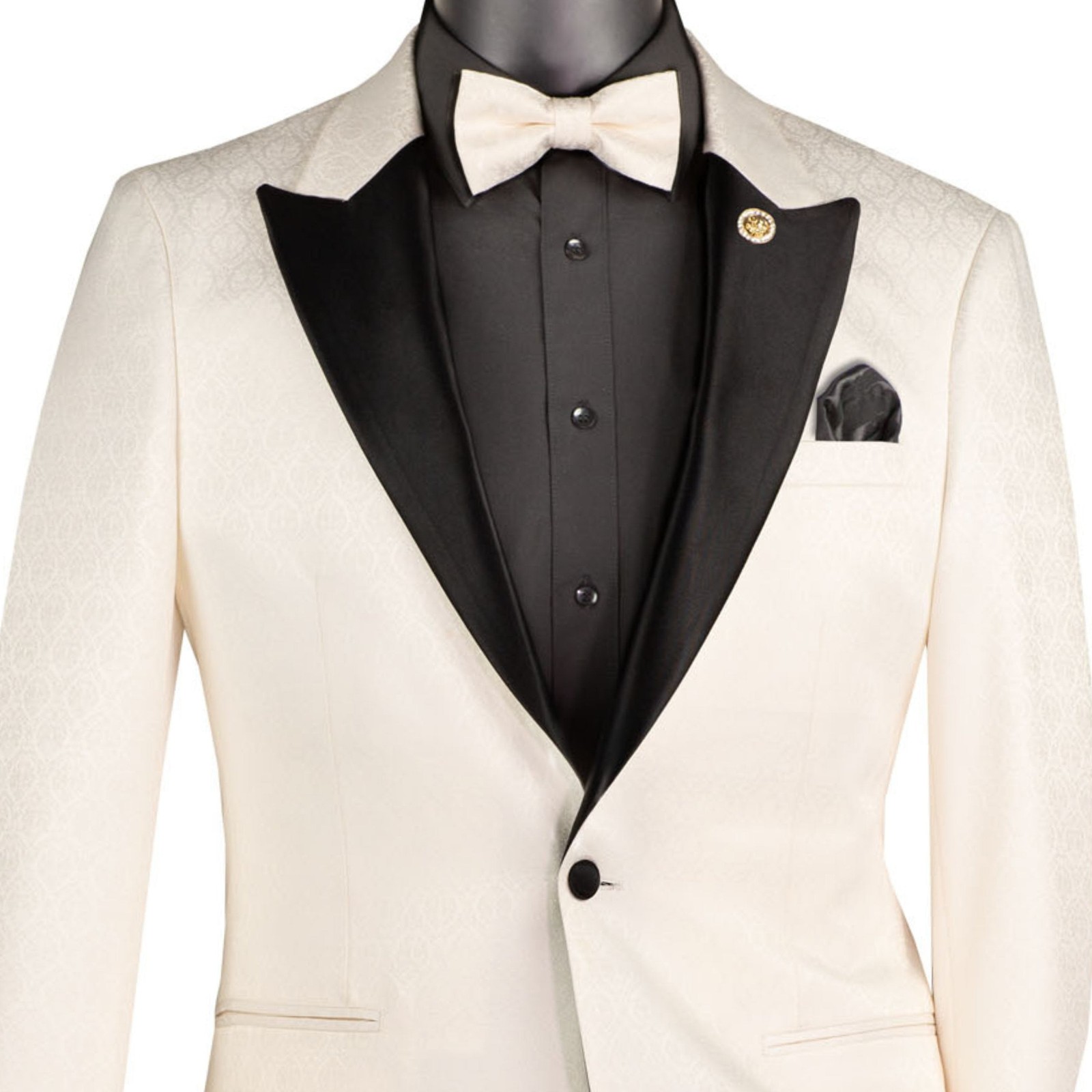 VINCI Men's Off White Jacquard Slim Fit Tuxedo Jacket w/ Bow Tie - NEW