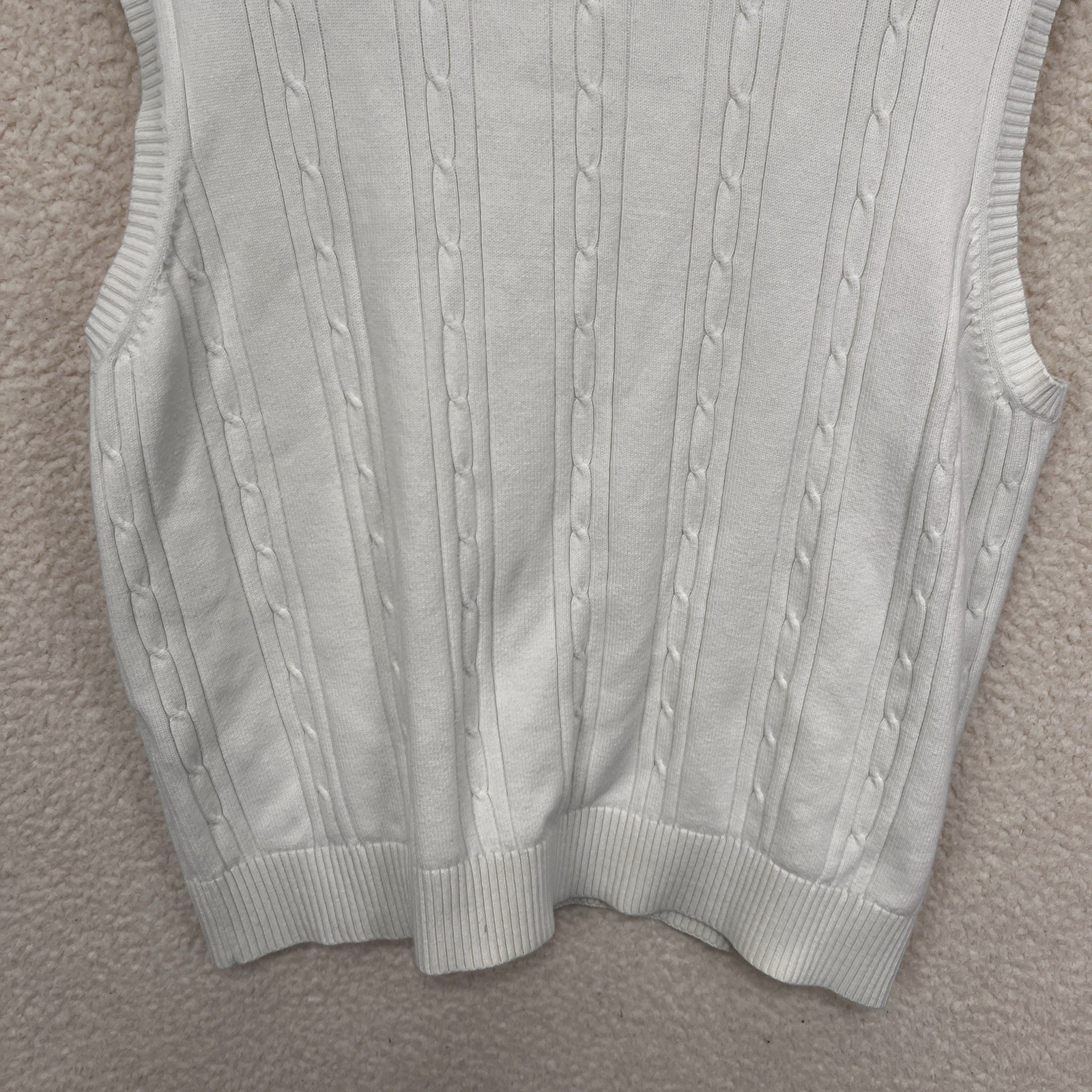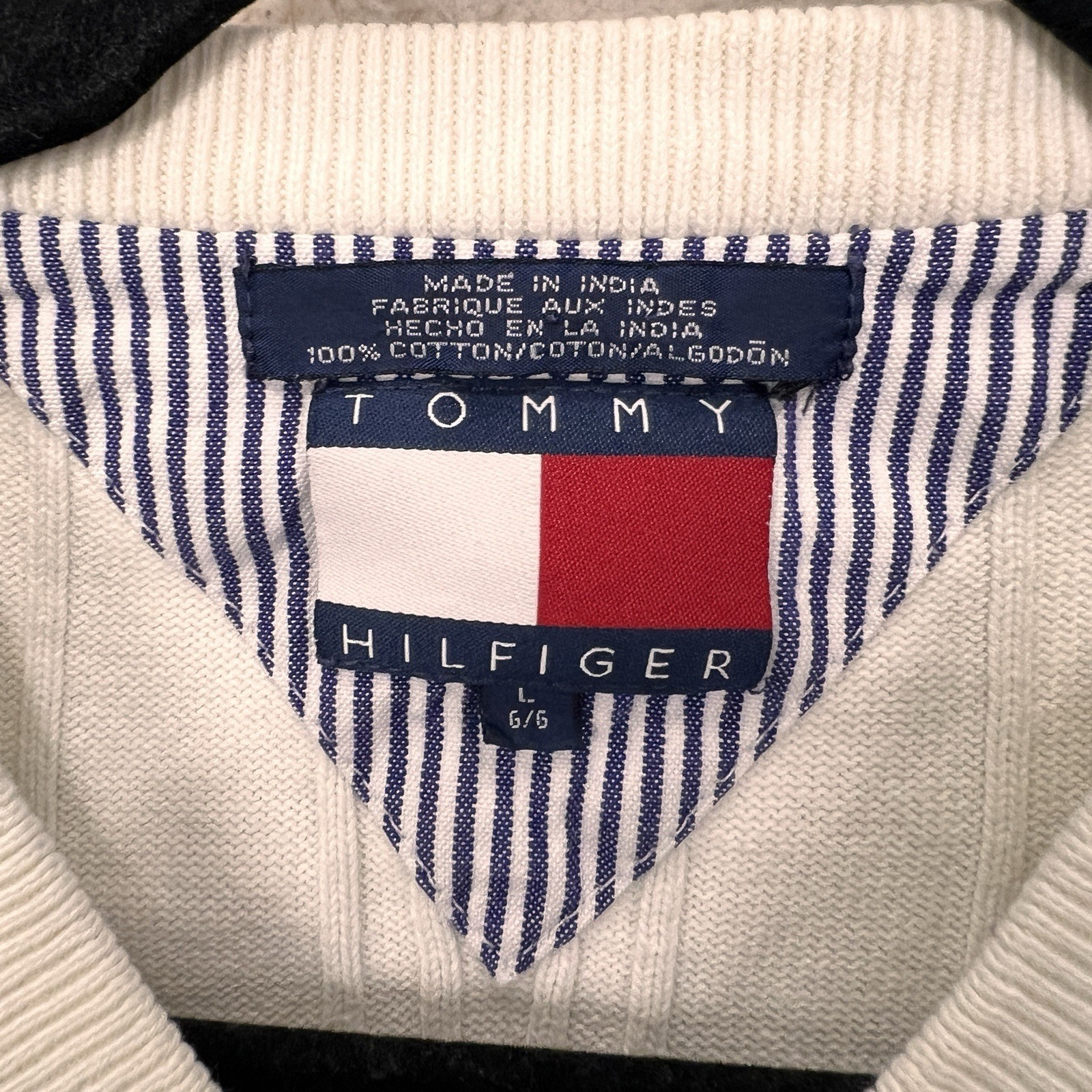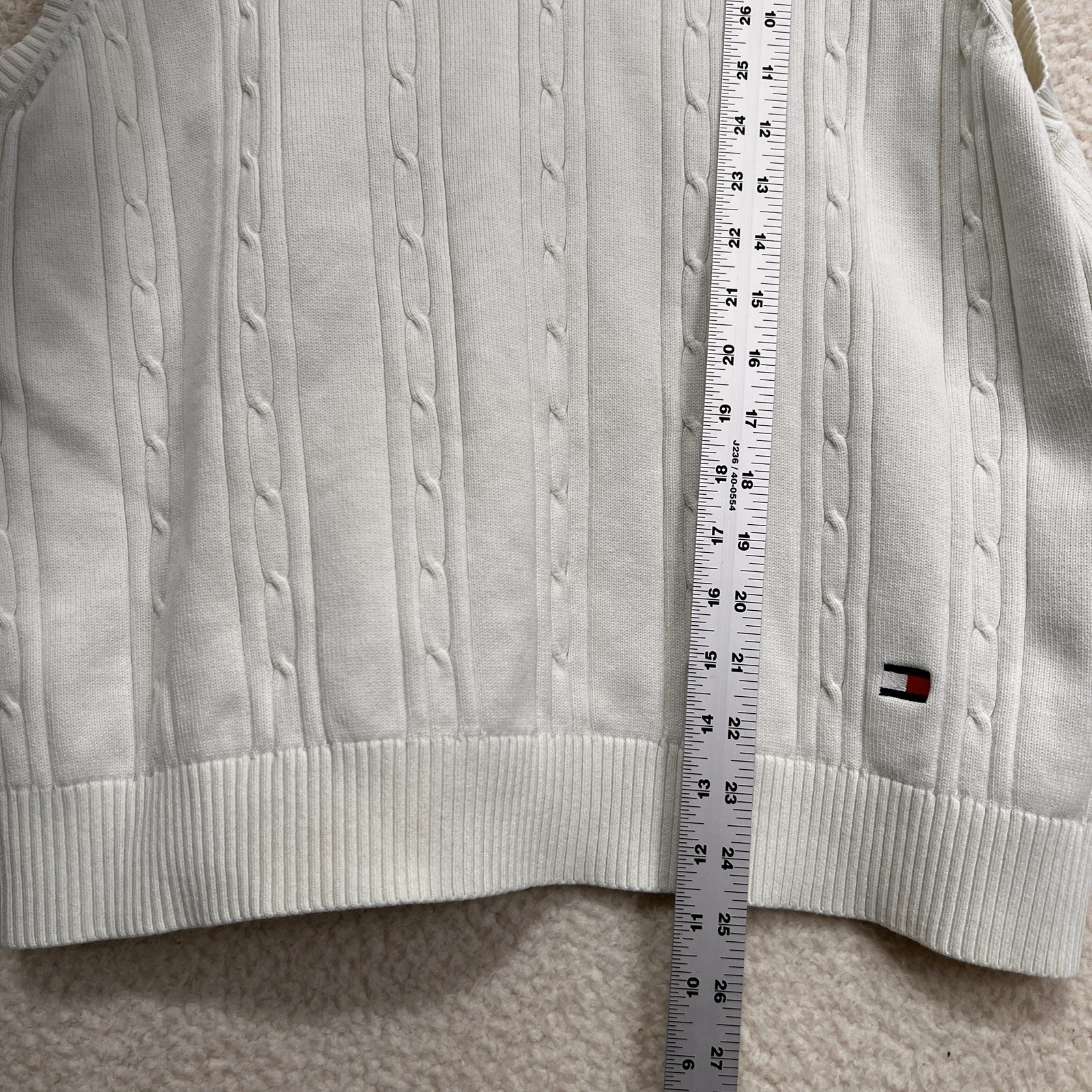 VTG Tommy Hilfiger Sweater Vest Mens L White Flag Logo Cable Knit V Neck Preppy