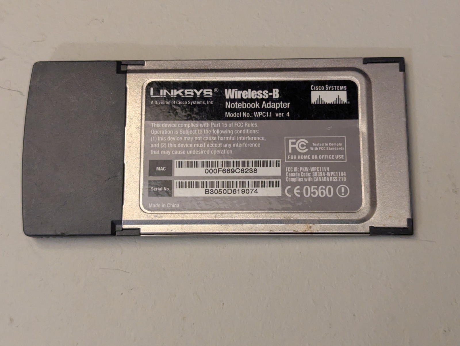 Linksys Wireless-B Notebook Adapter 2.4GHz 802.11b WPC11 Ver. 4 Cisco Systems