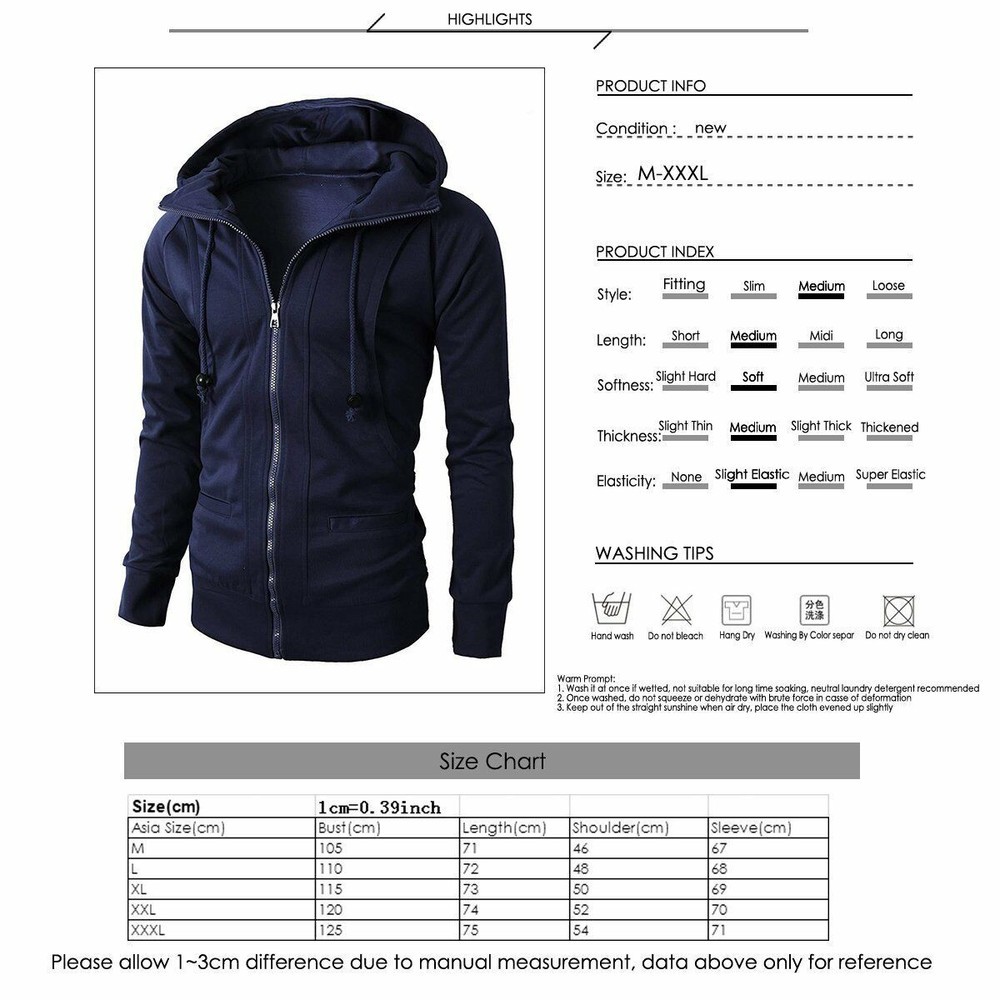 Men s Slim Zip Up Hoodie - Warm Hooded Sweatshirt Outwear Jacket
