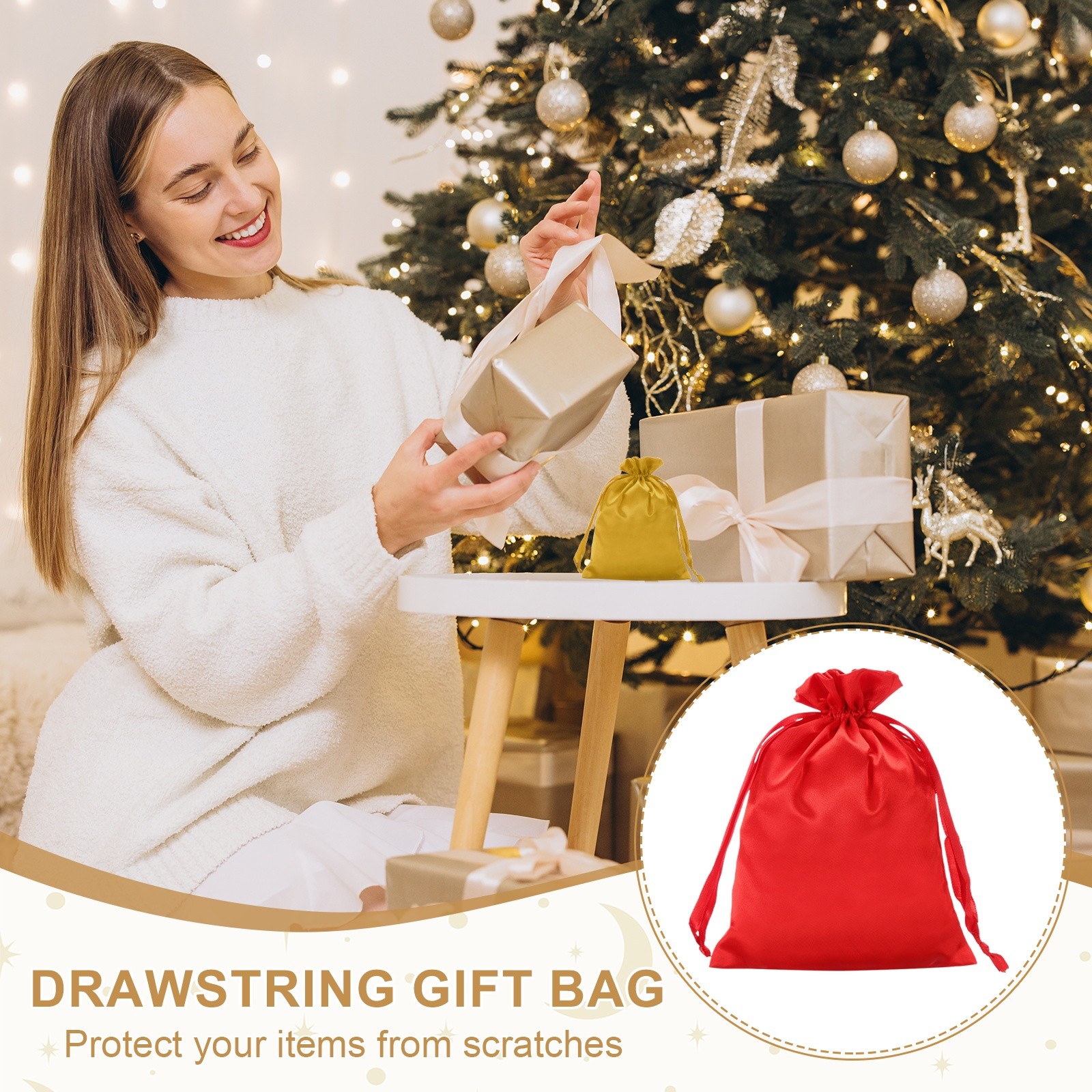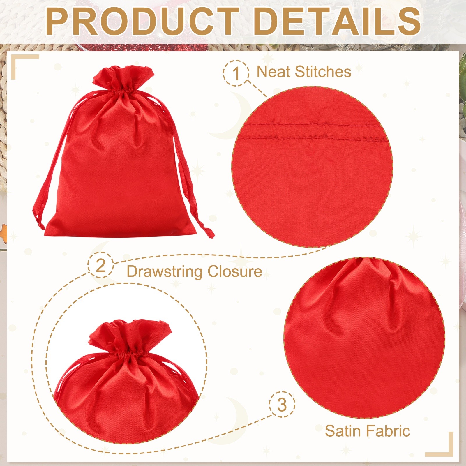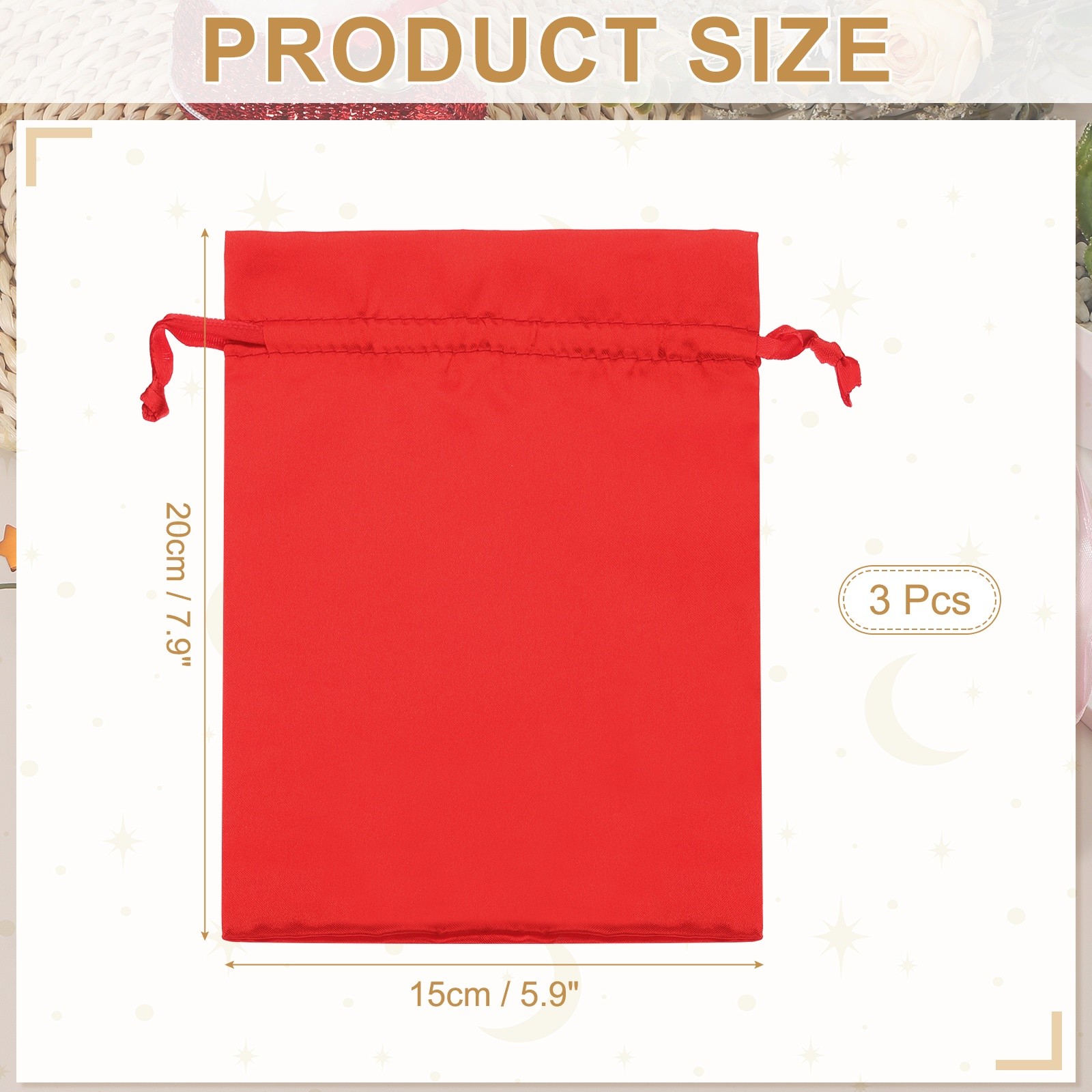 3Pcs 6 x 8 Inch Satin Bags with Drawstring Drawstring Gift Bags Red
