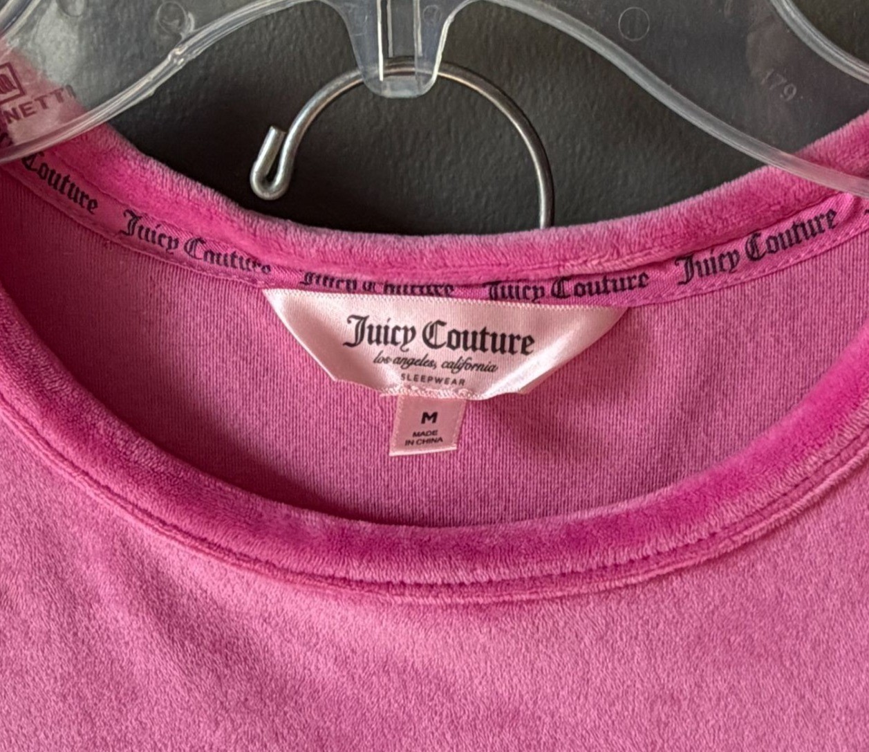 Juicy Couture Pink Velour Bling Logo 2 pc Lounge Set Top Pants Medium