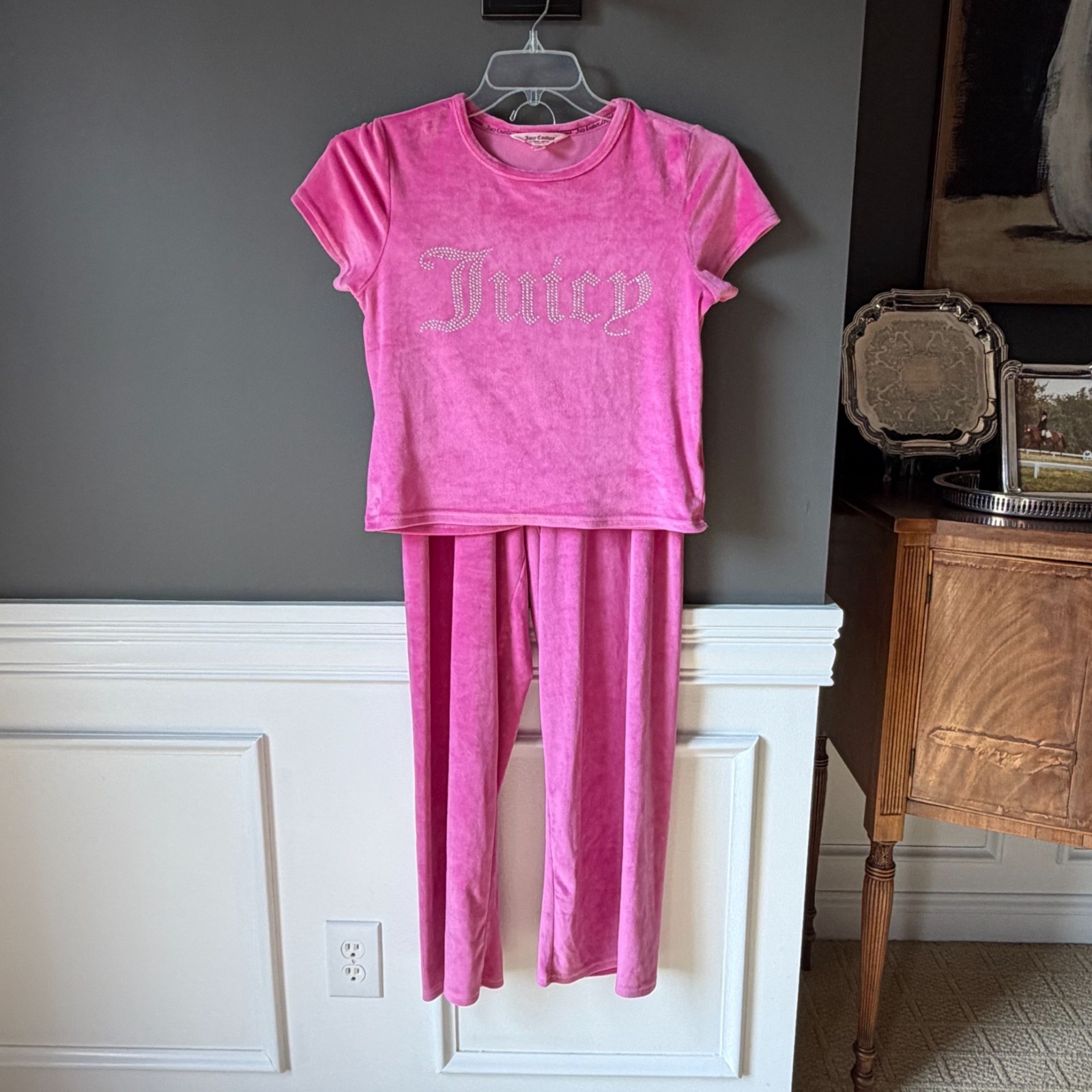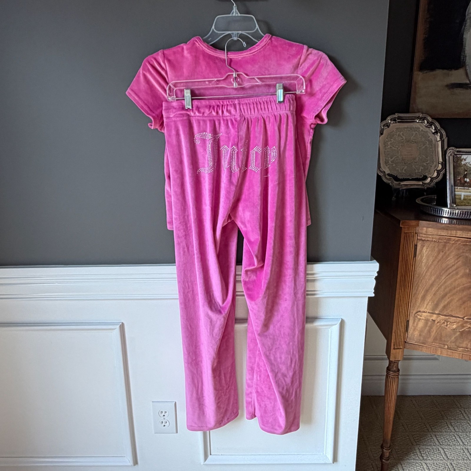 как выглядит Juicy Couture Pink Velour Bling Logo 2 pc Lounge Set Top Pants Medium фото