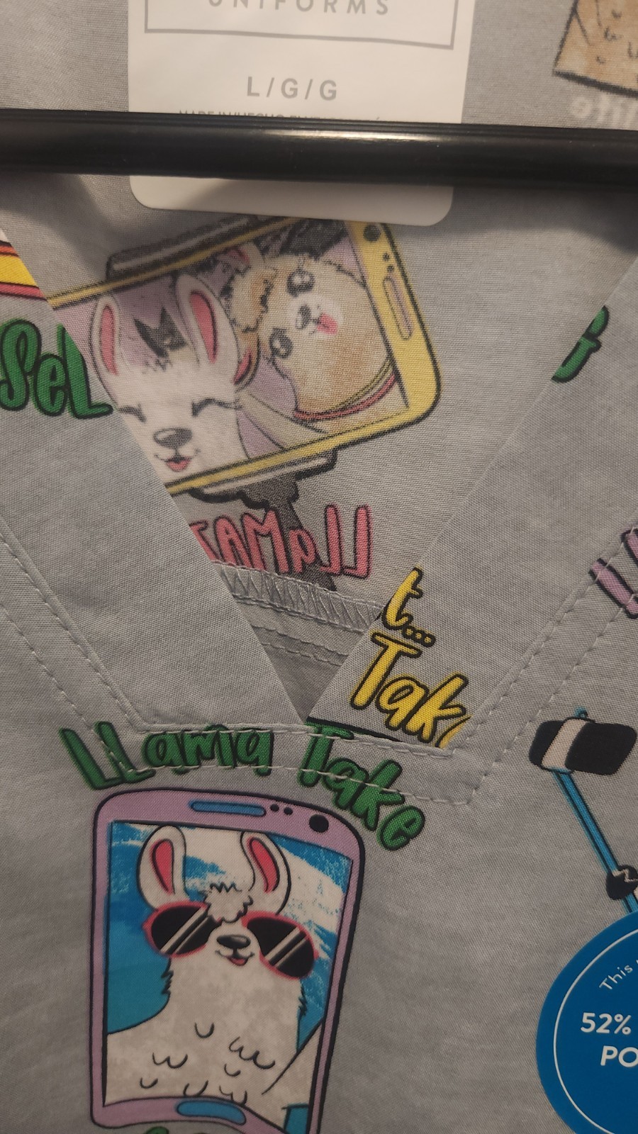как выглядит Cherokee Large Llama Print Scrub Top, New With Tags Gray Background фото