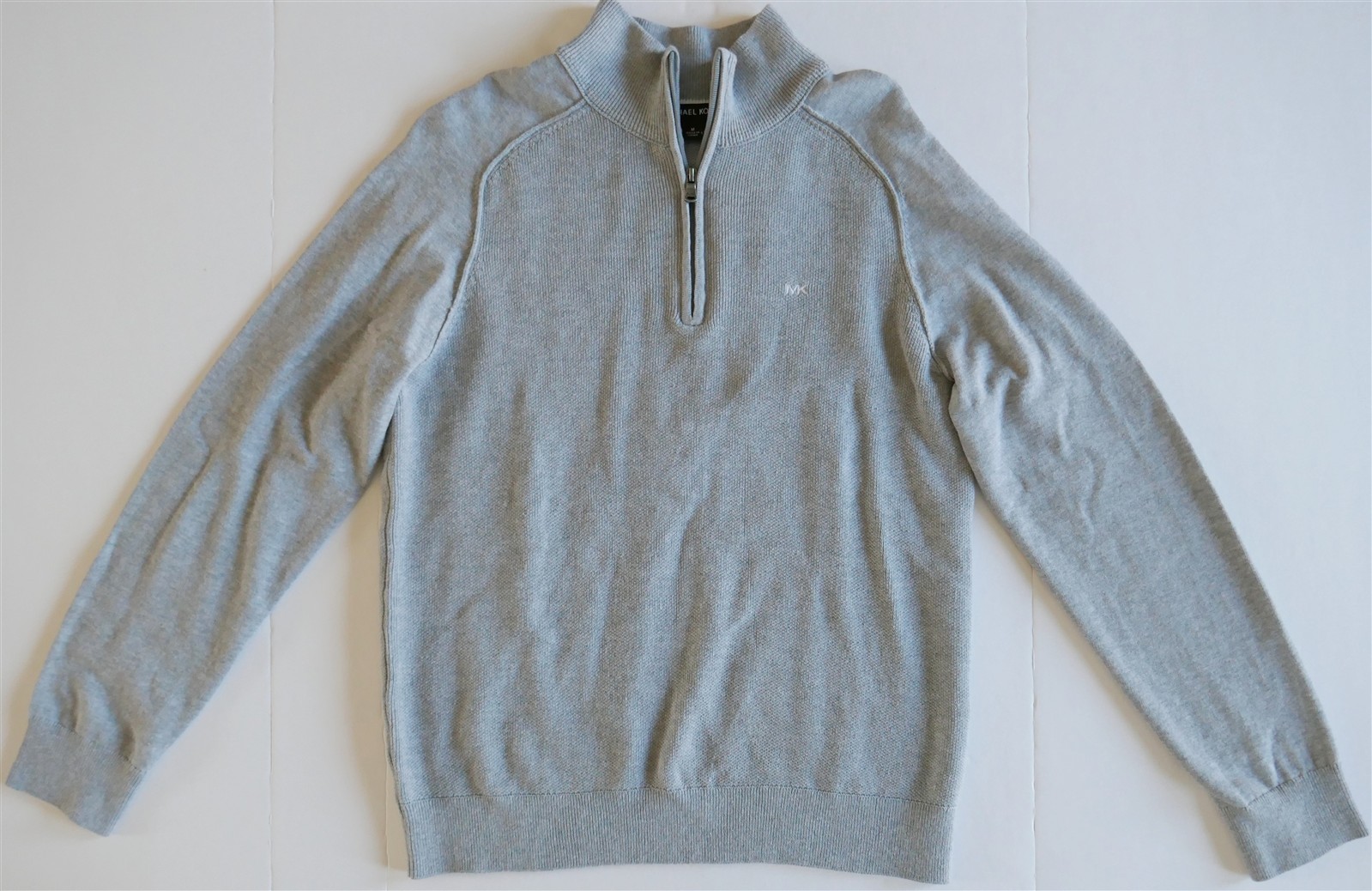 NWT Michael Kors Heather Grey LS 1/4 Zip Sweater M 100 Cotton Knit MK LOGO 128