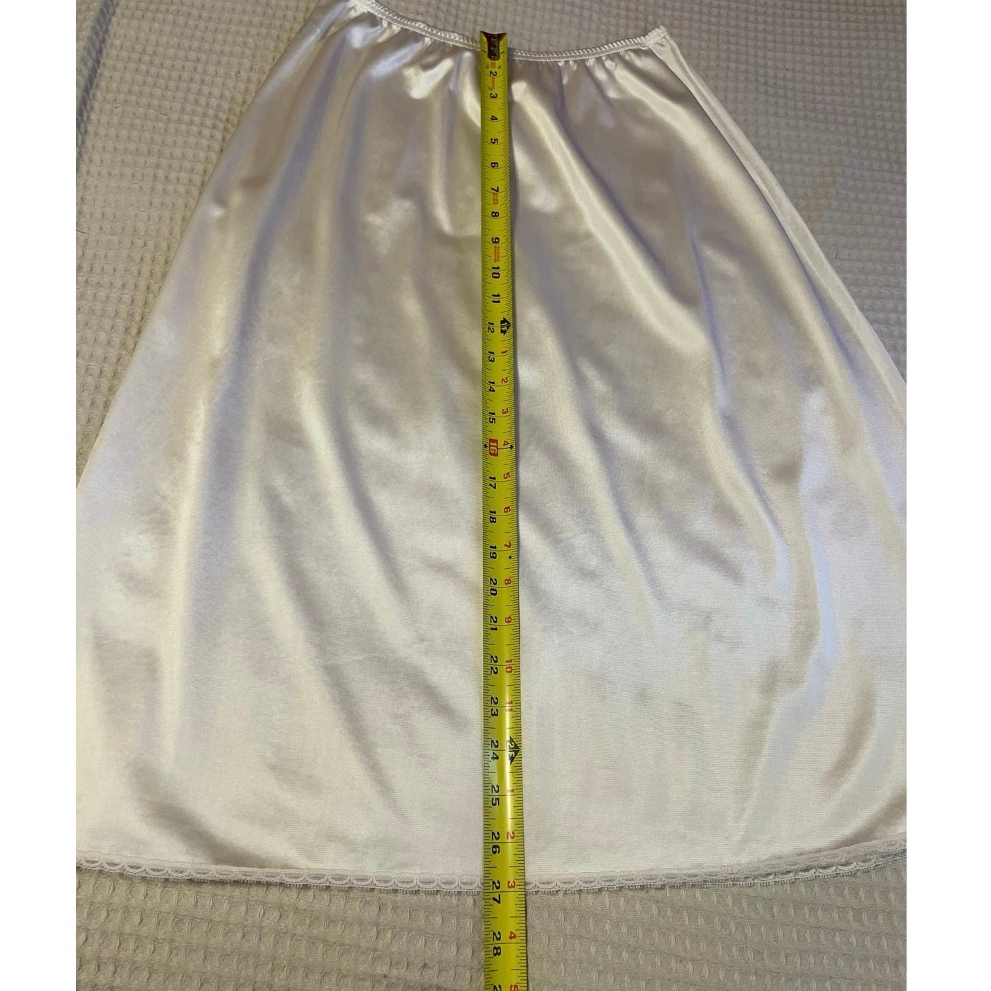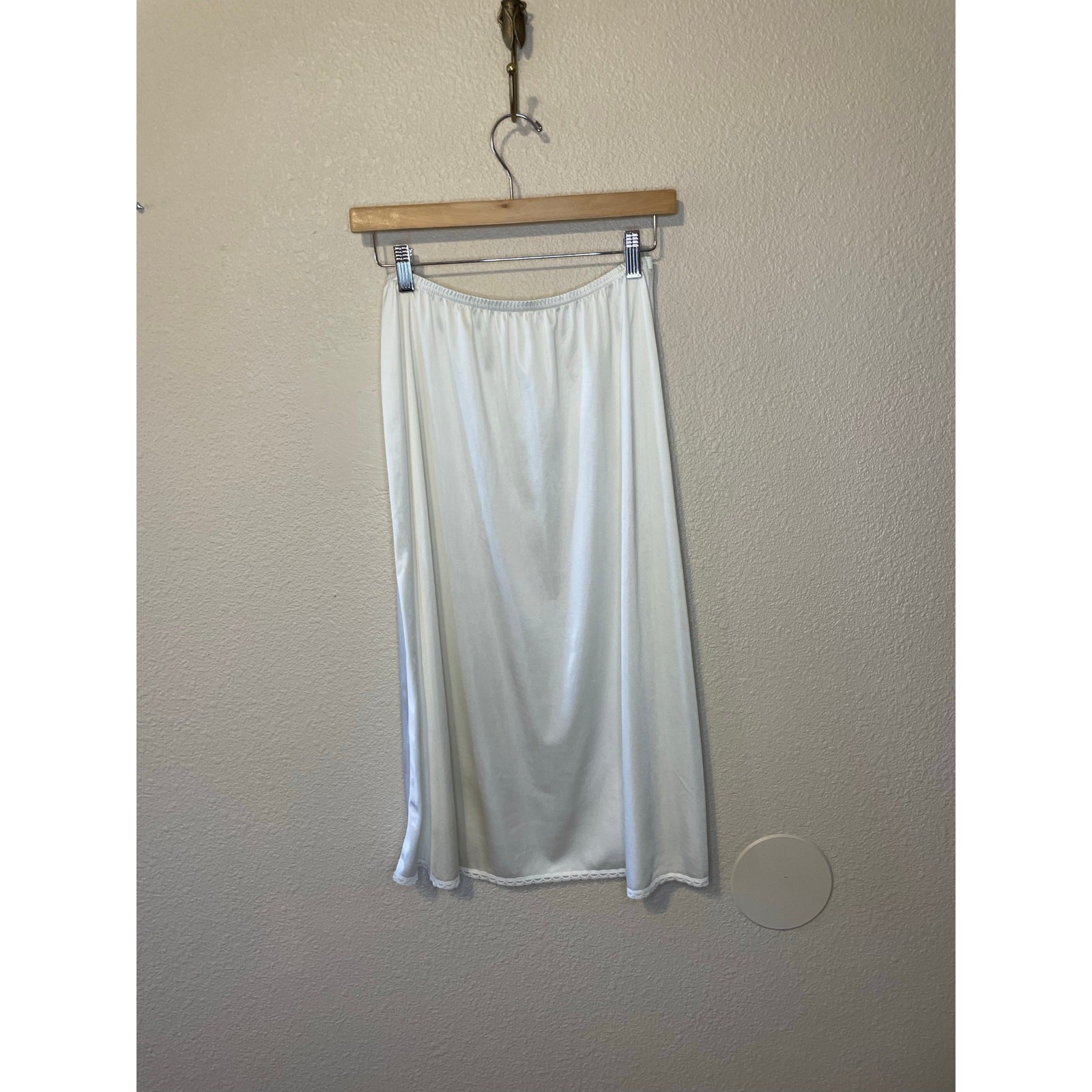 как выглядит VTG Vanity Fair Silkey Off White Midi Classic Slip Skirt Medium фото