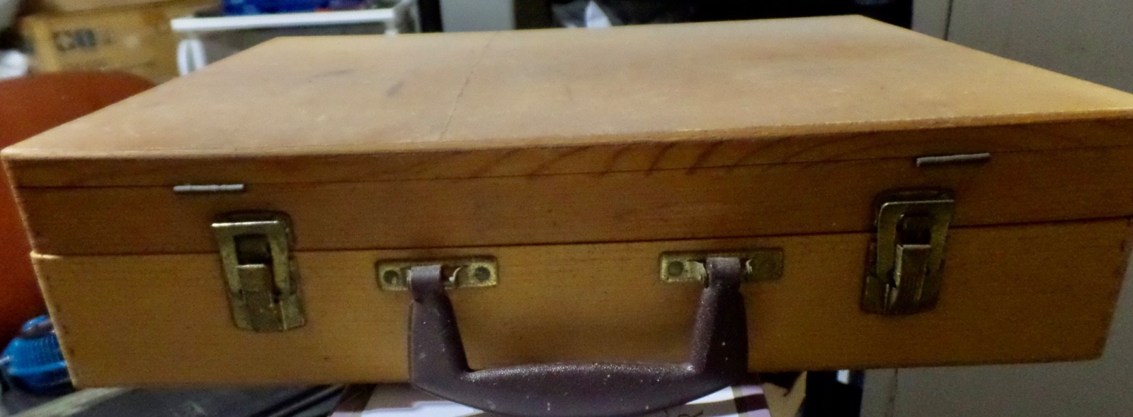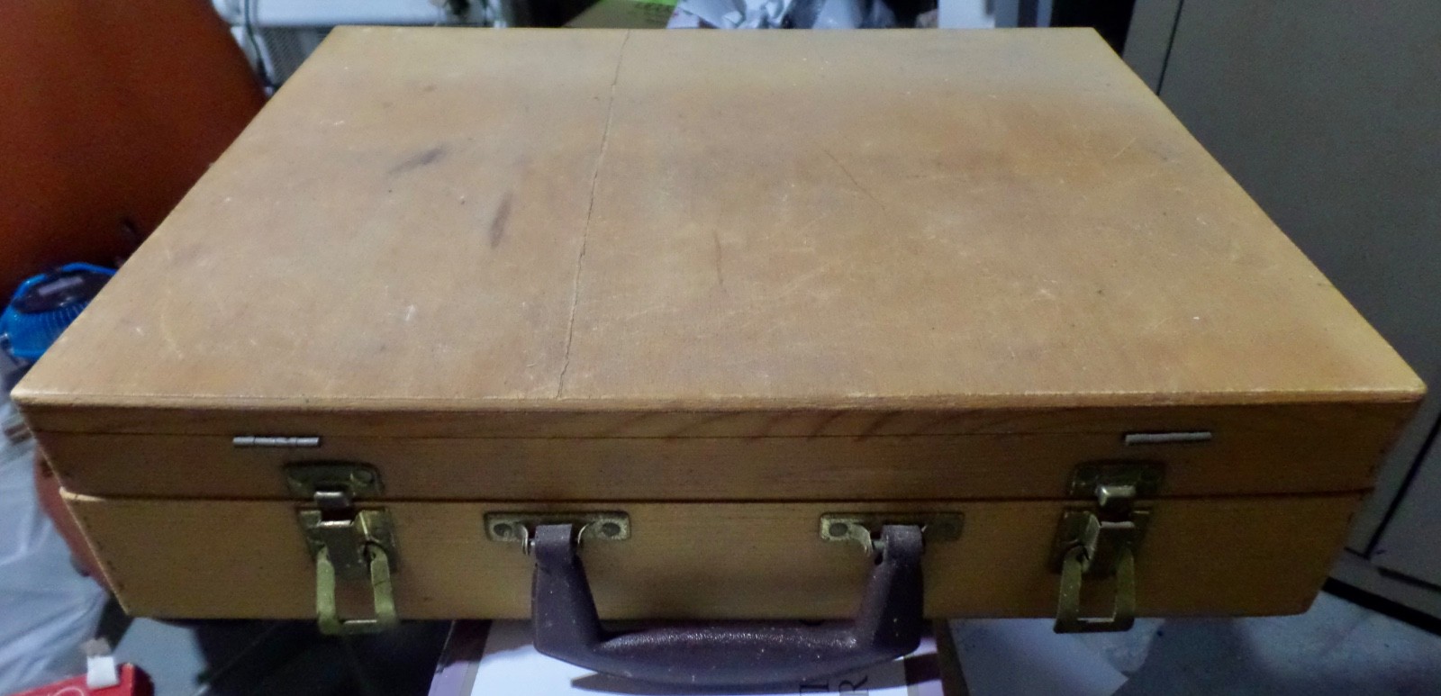 как выглядит Vintage Painter Artist Work Box Case w/ palette Wood Tool Tray Dove Tail Nice фото