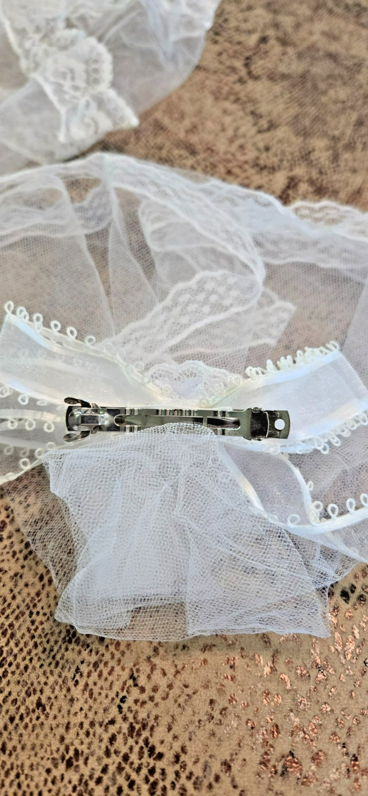 как выглядит Sears Communion Flower Girl Dress Off White Lace Sheer Vintage 2 Veils фото