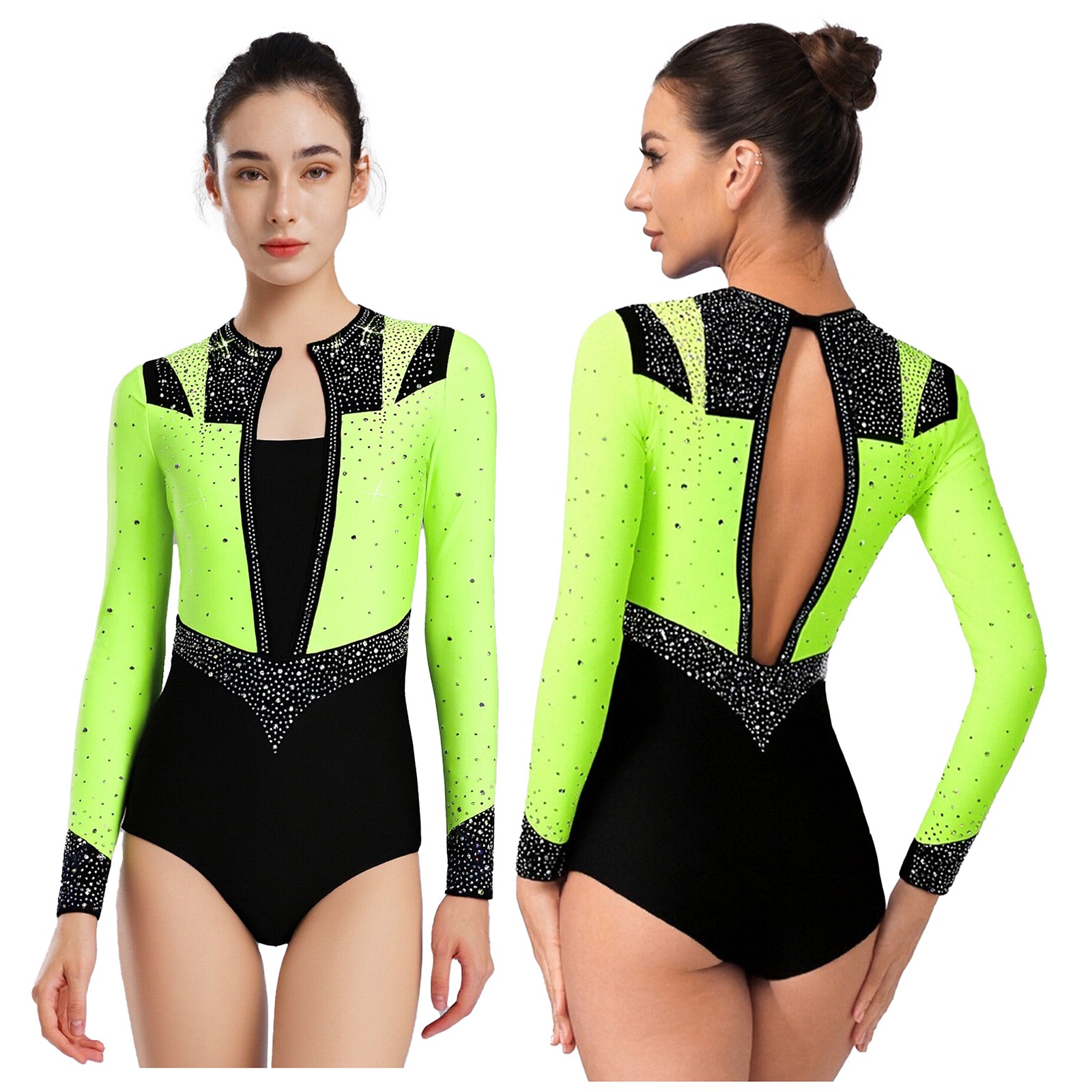 Womens Bodysuit Dance Costumes Performance Leotard Practice Shiny Rhythmic Back