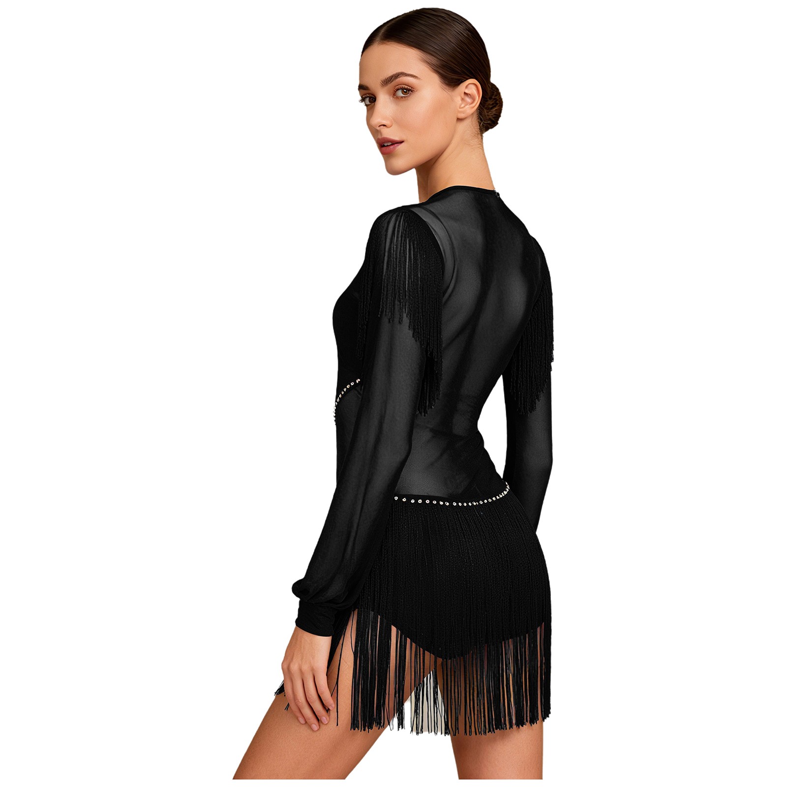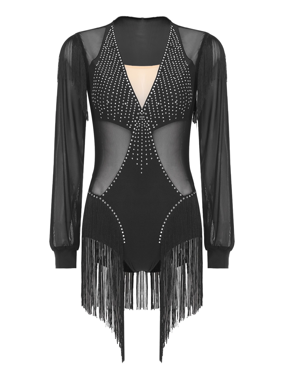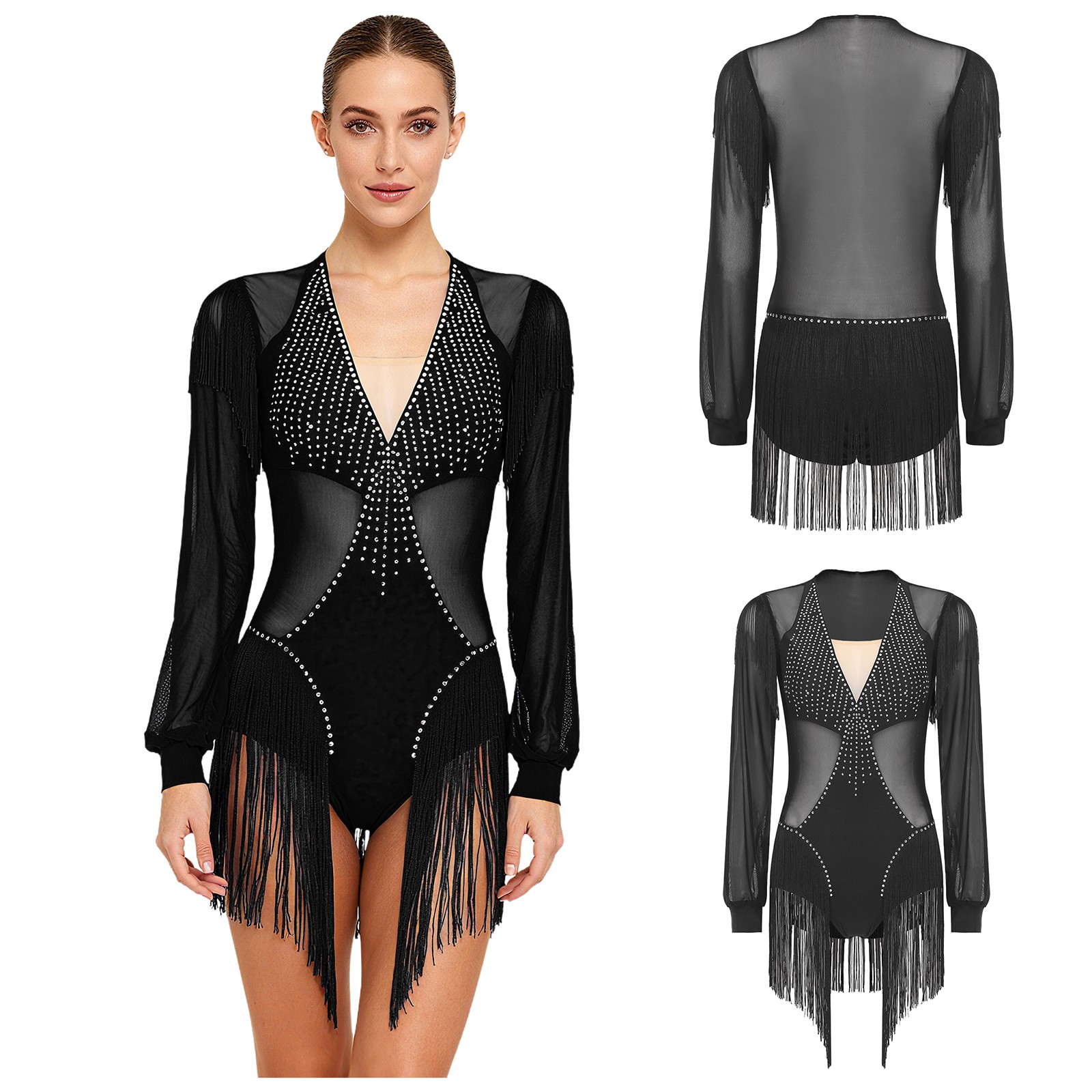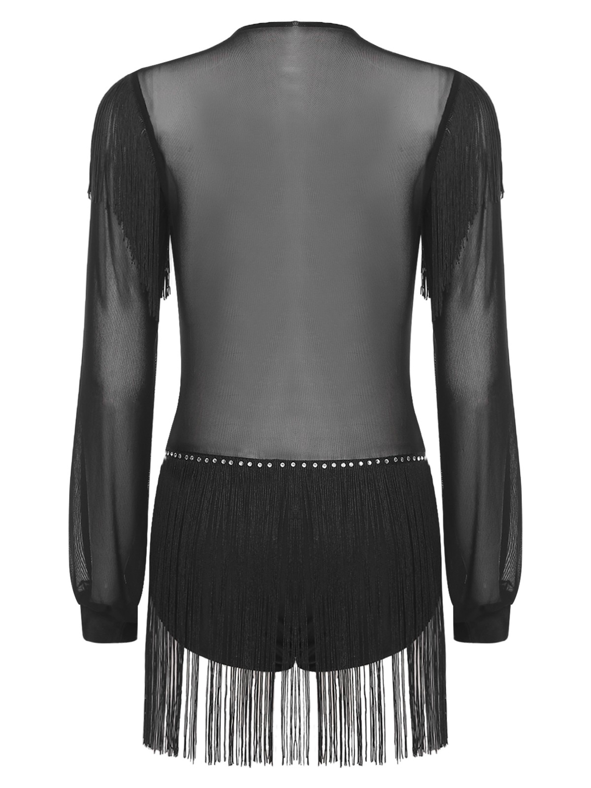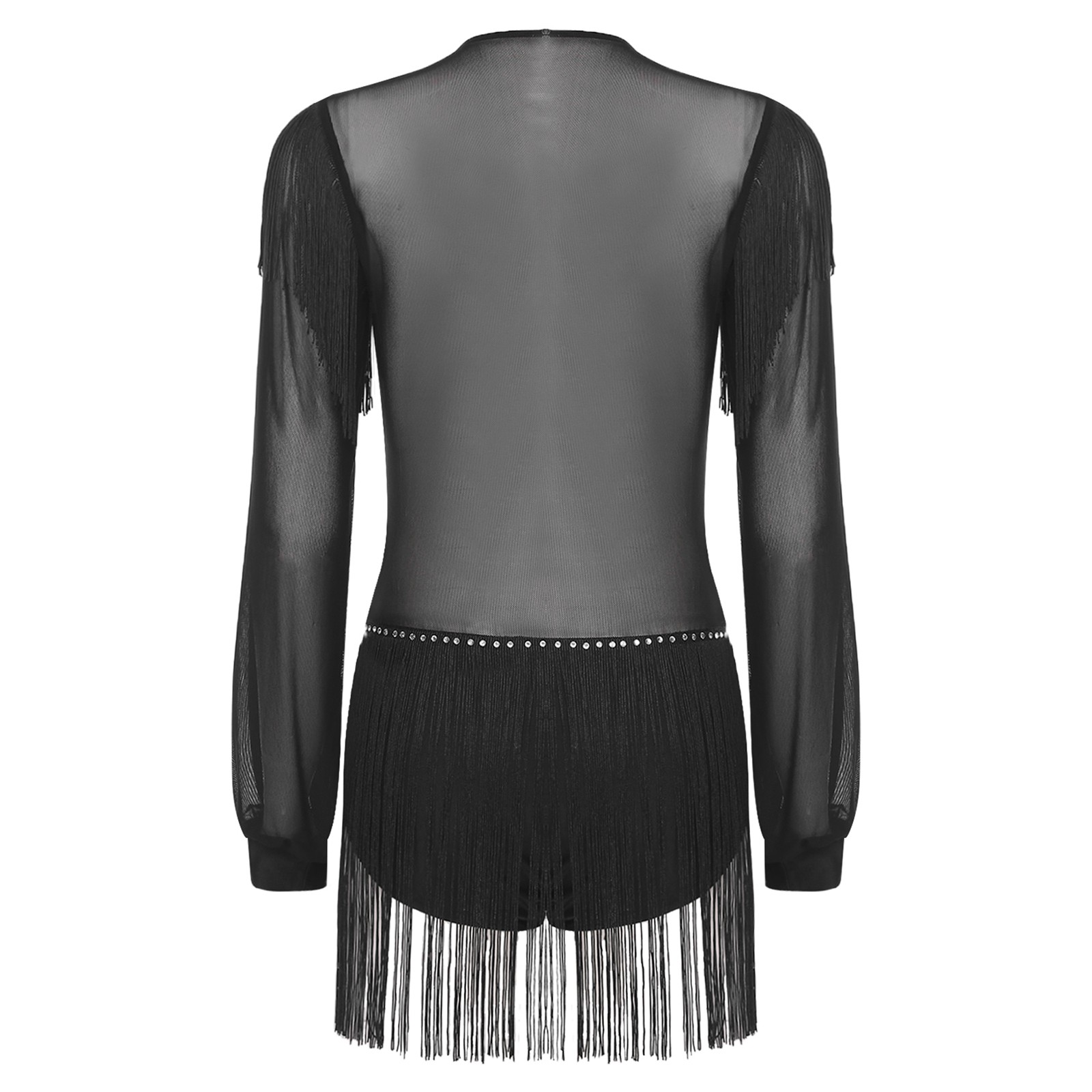 Womens Dress Sheer Jumpsuit Tango Dancewear Salsa Leotard Long Sleeve Latin