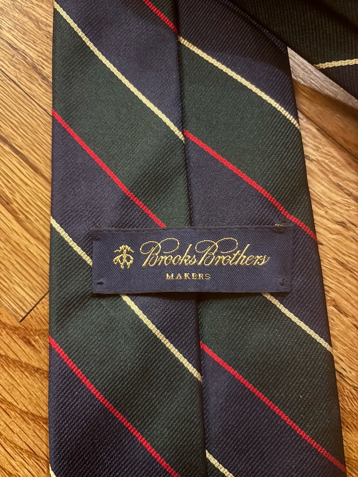 Brooks Brothers Makers Silk Tie Men's Navy Green Red Stripe Woven in England 59