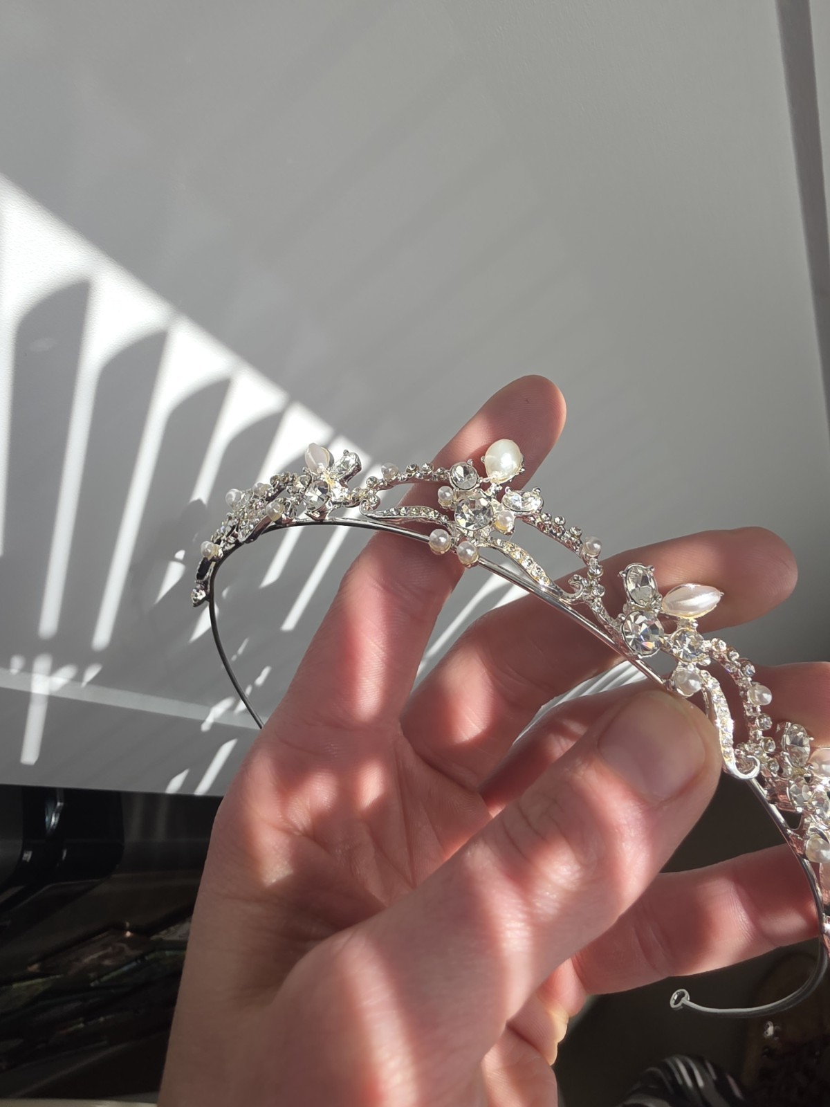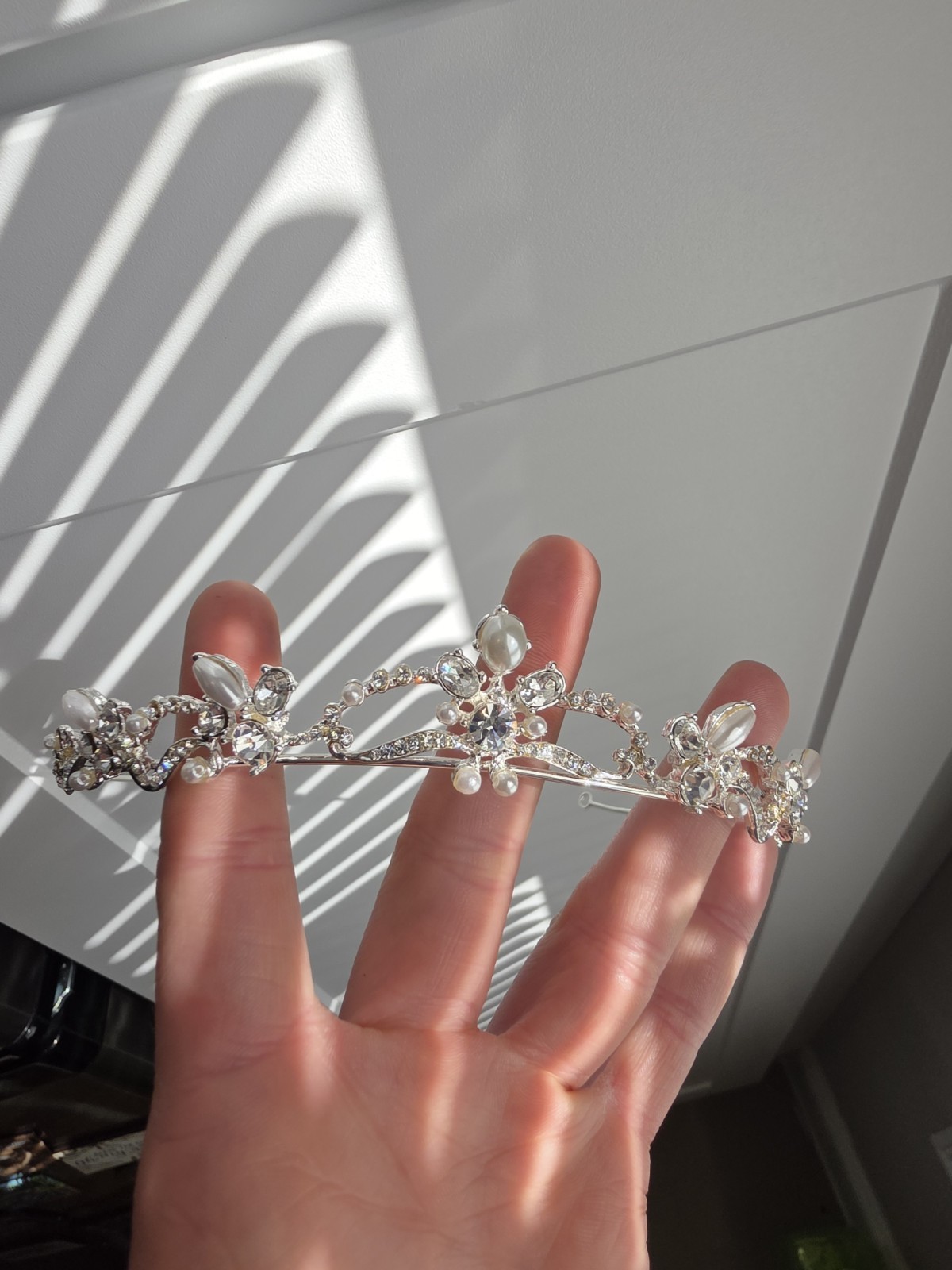 как выглядит Swarovski Crystal Bridal Tiara Silver Toned With Pearls фото