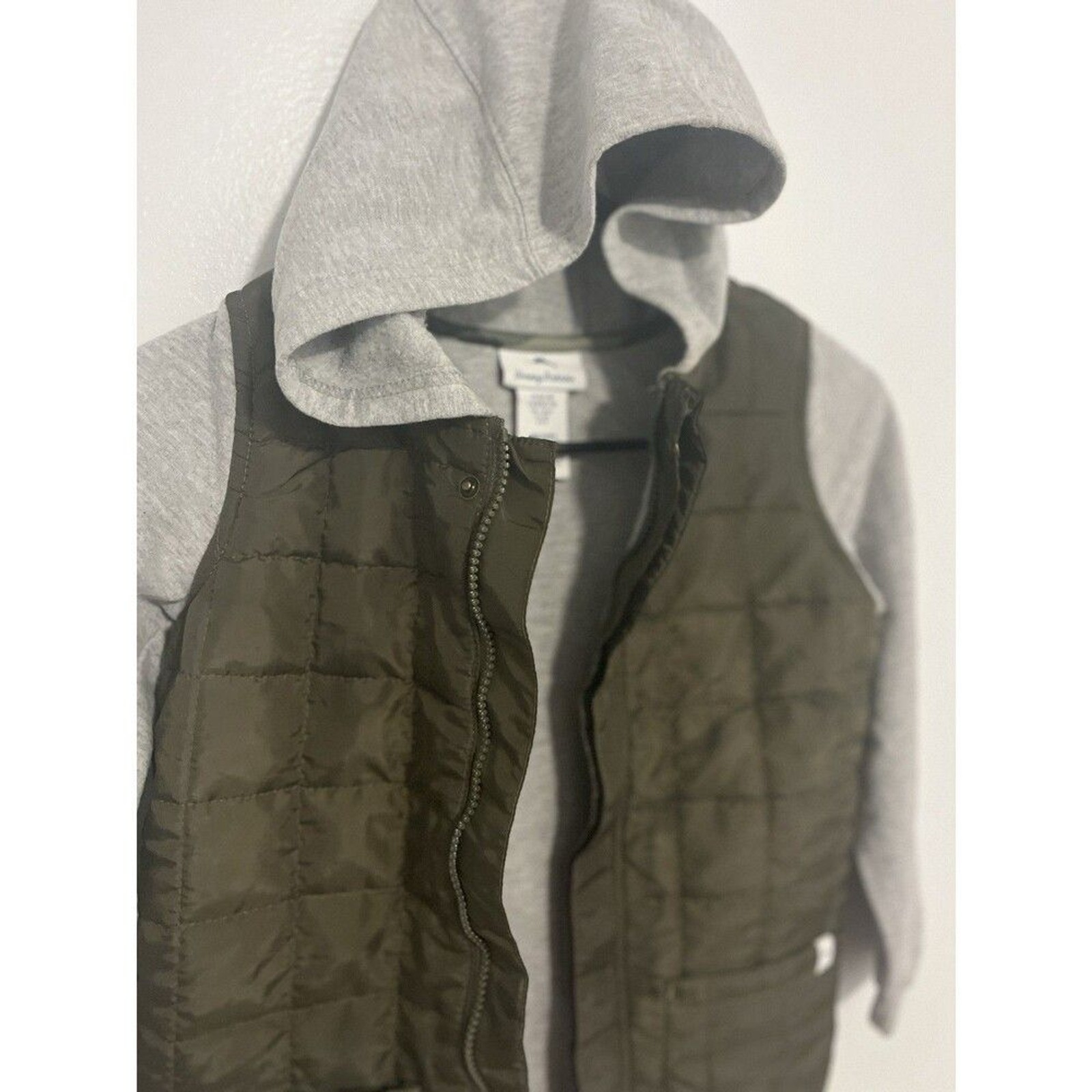 как выглядит Tommy Bahama Boys Quilted Hoodie Jacket Puffer Cotton Gray Olive Green Sz M 7-8 фото