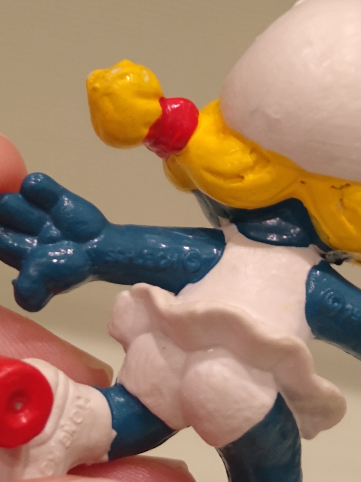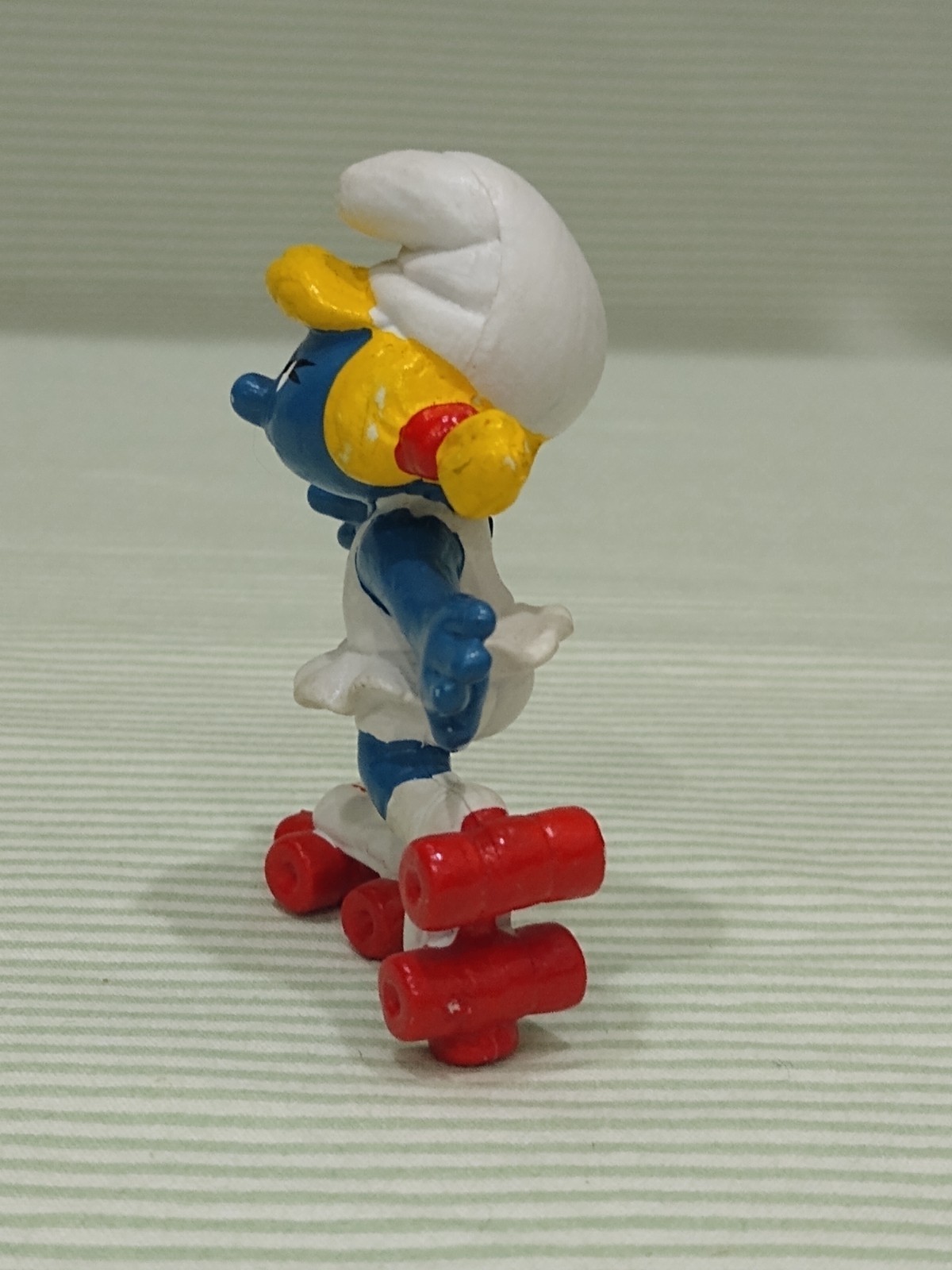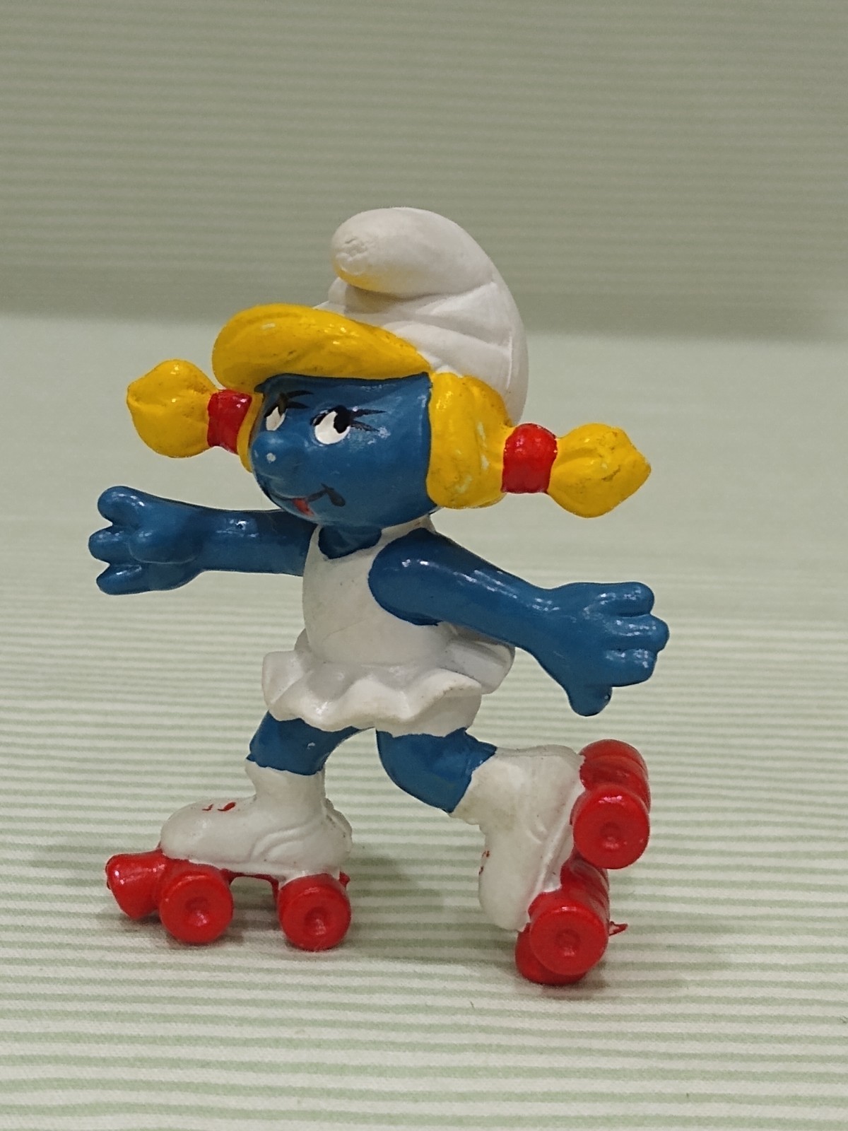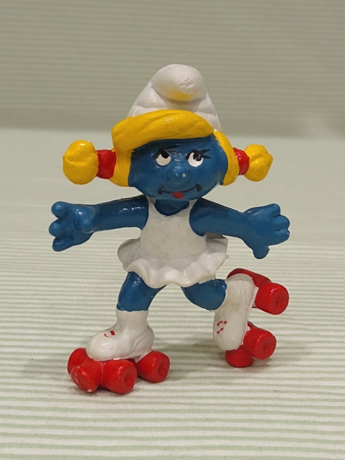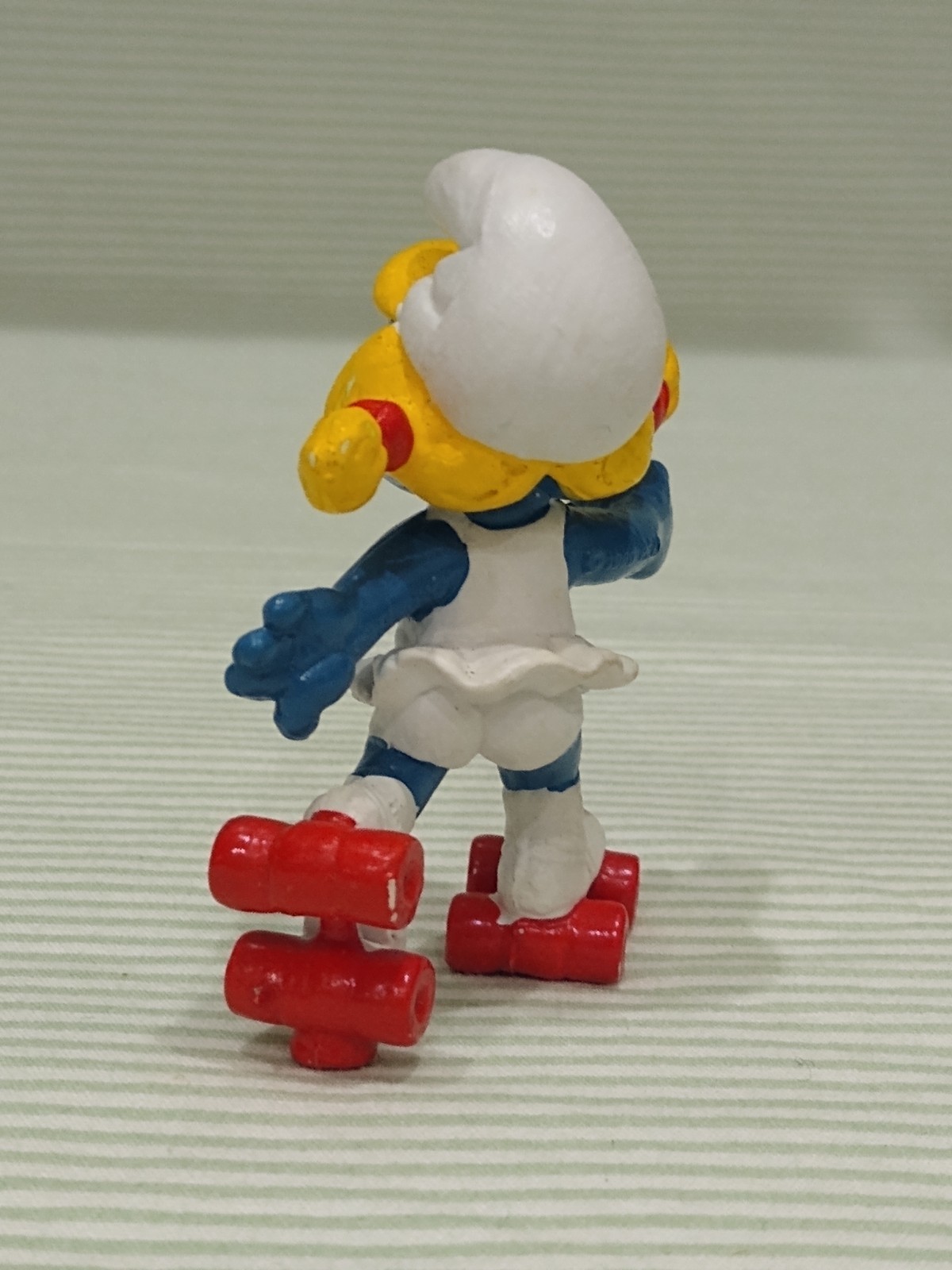 • Smurf Figure Smurfette Skater Rollerskater Red Roller Skates Vintage Smurfs 1980