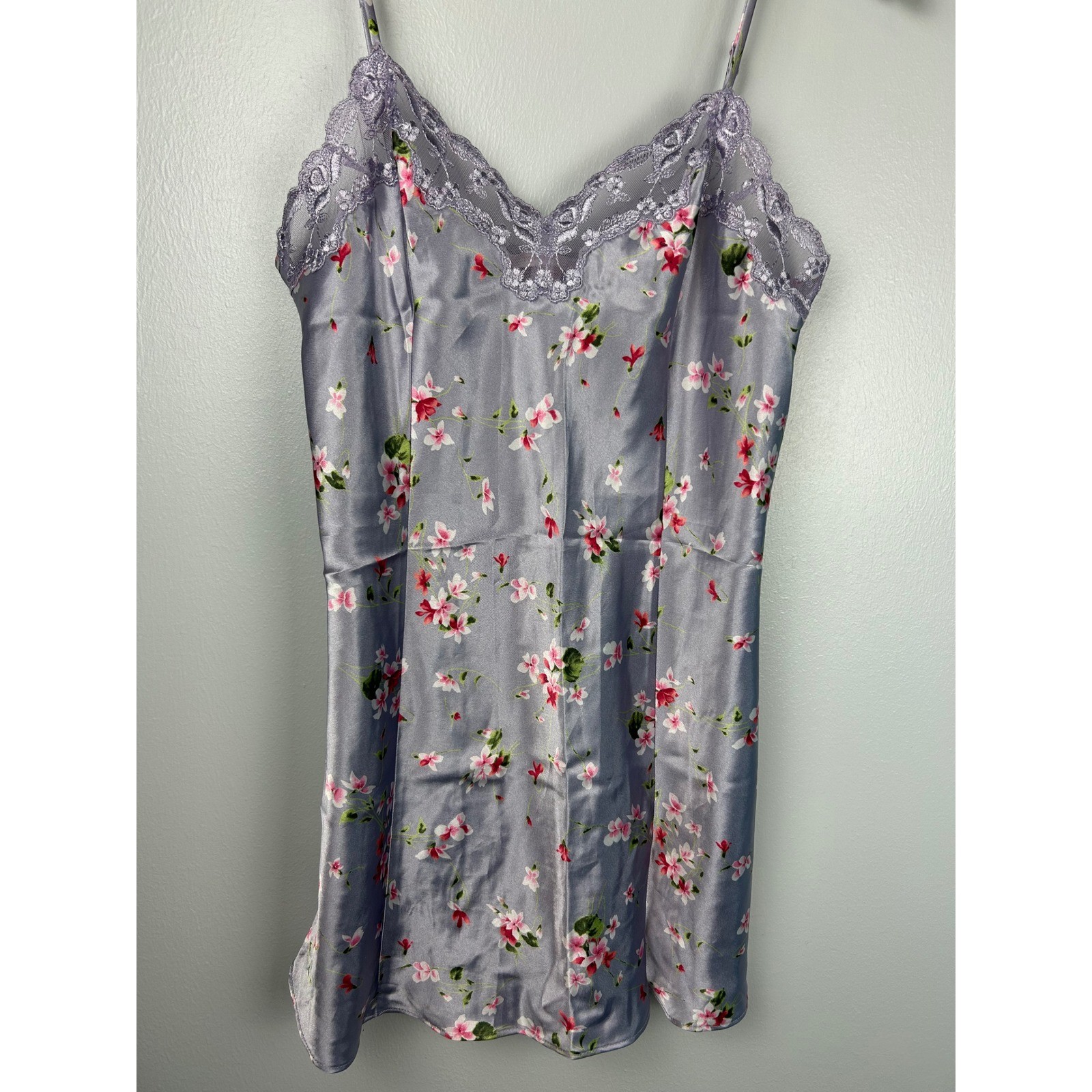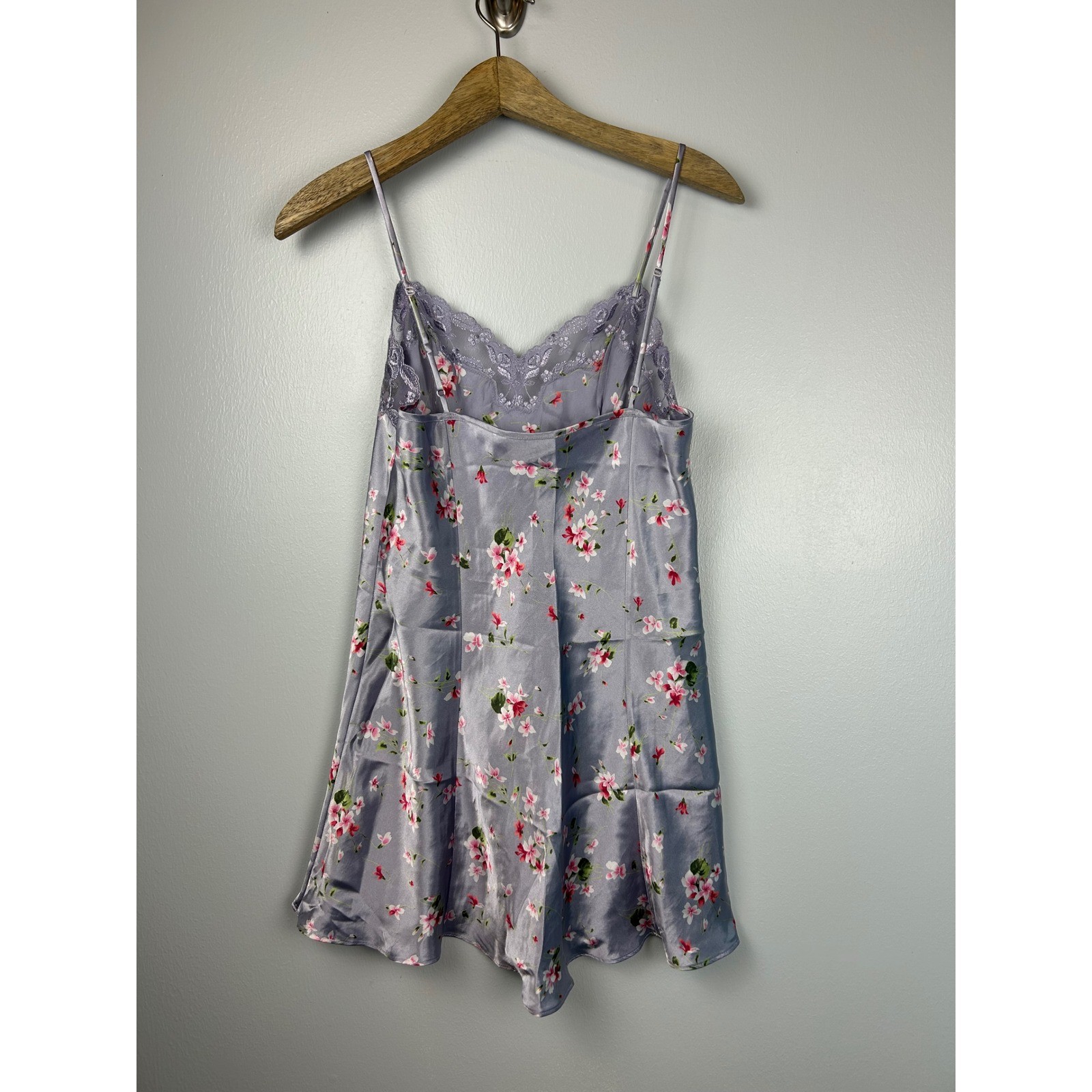 как выглядит Vintage 90s Victorias Secret Floral Satin Lace Trim Slip Dress M Purple Lilac фото
