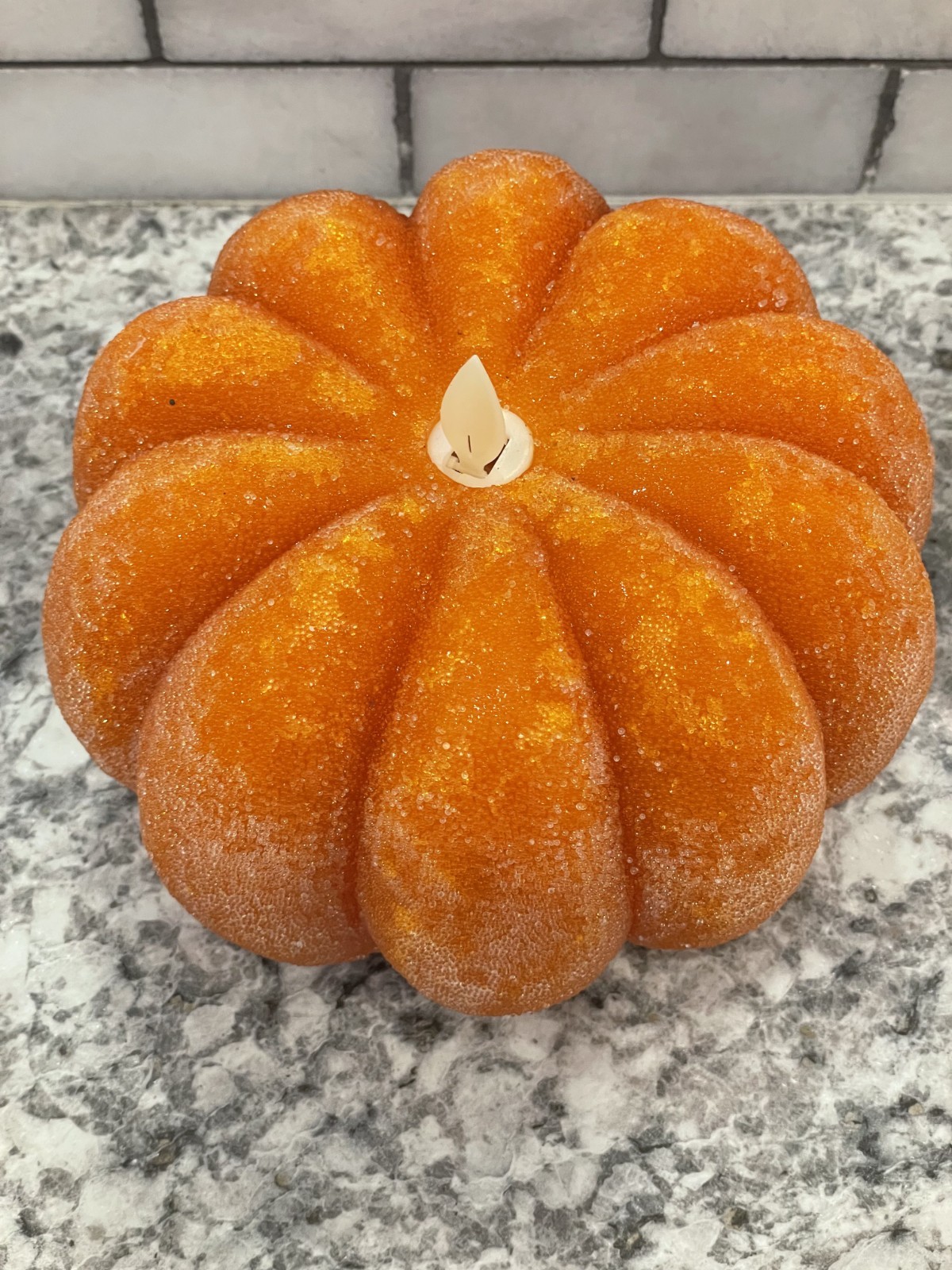 Fall/Halloween Light Up Pumpkin, Orange, Glittery, Flameless Led, 6 x6