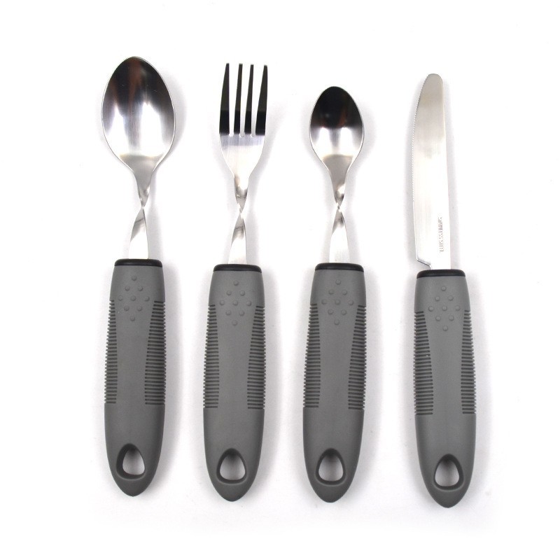 Adaptive Elderly Utensils Set Stainless Steel 4 Pieces Travel Pouch Grip