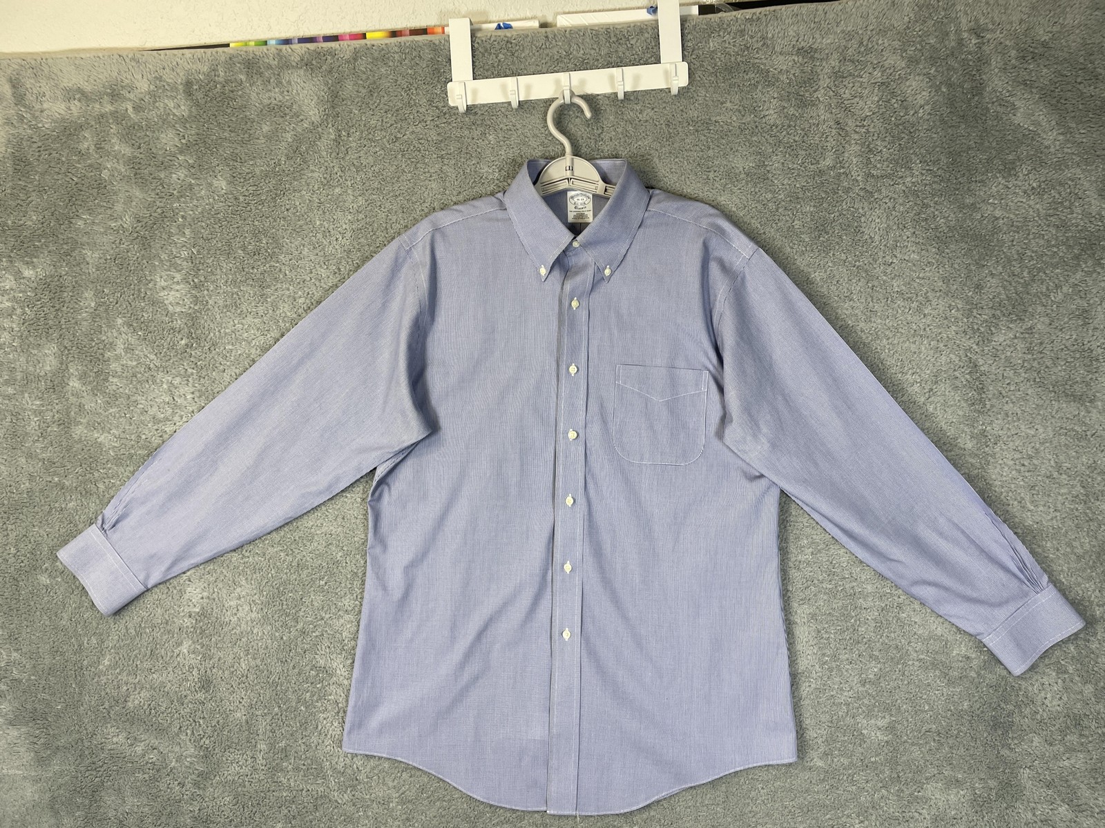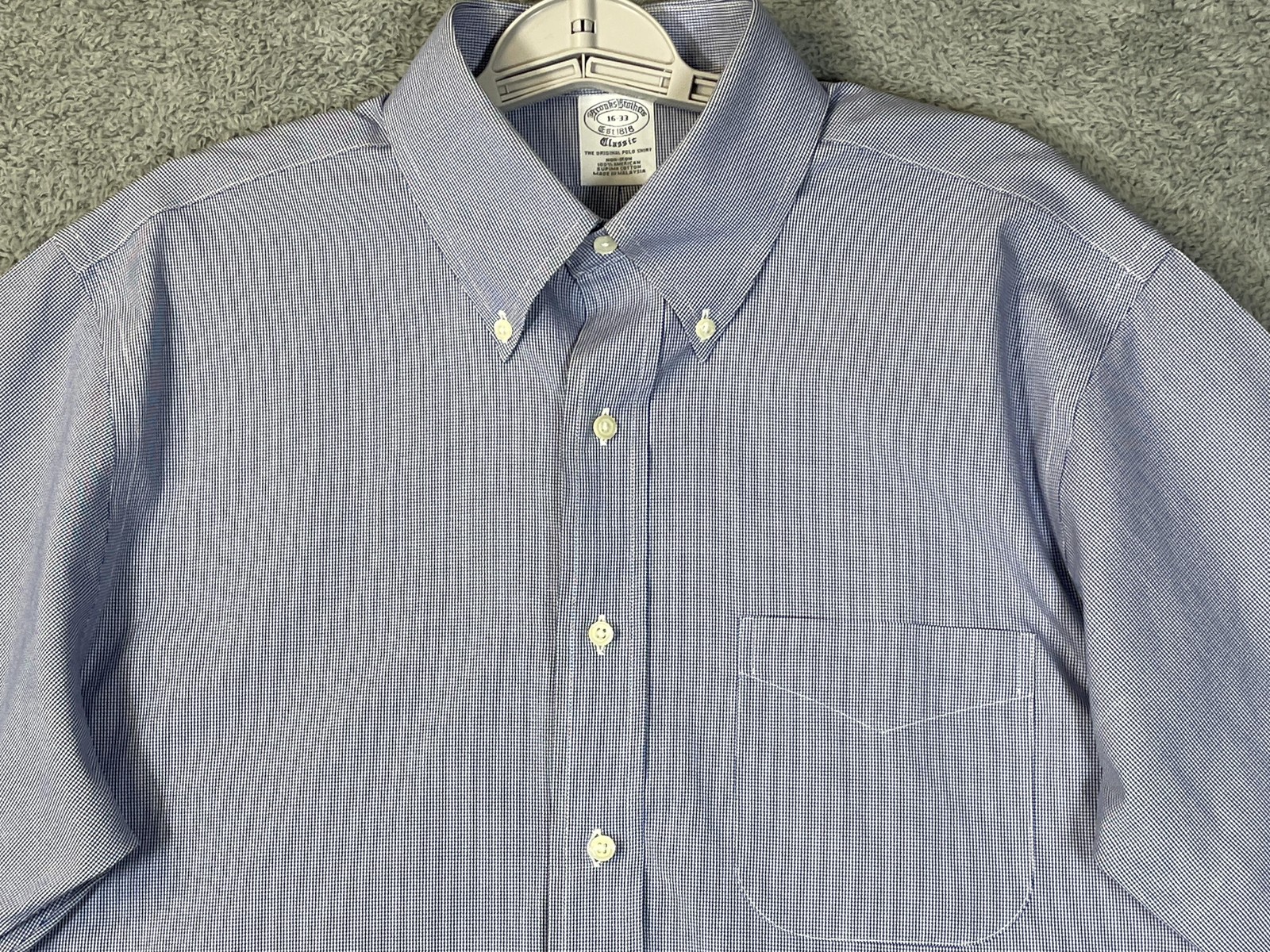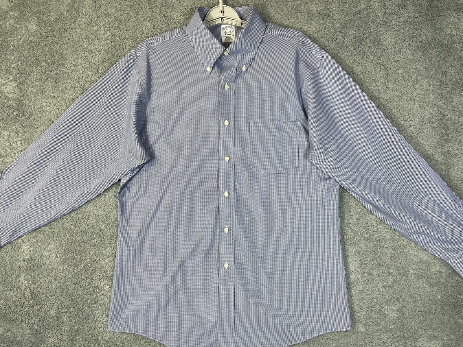как выглядит Brooks Brothers Shirt Mens 16 32/33 Blue Check Non Iron Button Down Classic Fit фото
