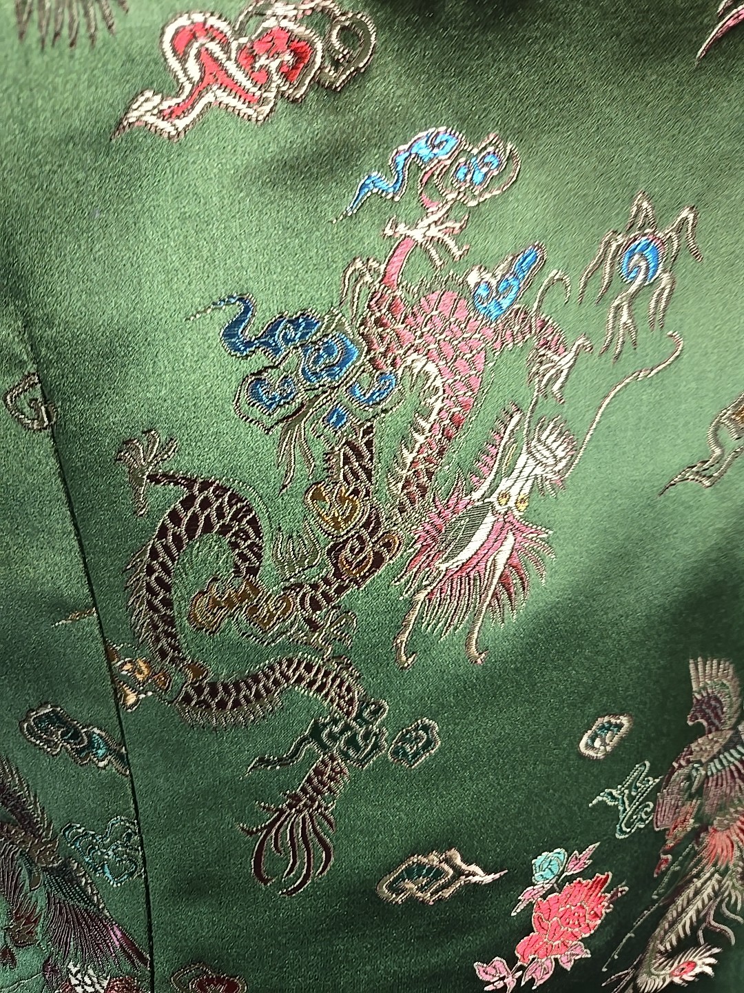 как выглядит Lian Lin Vintage Grean Asian Floral Emrbroidered Satin Maxi Dress Size Large фото