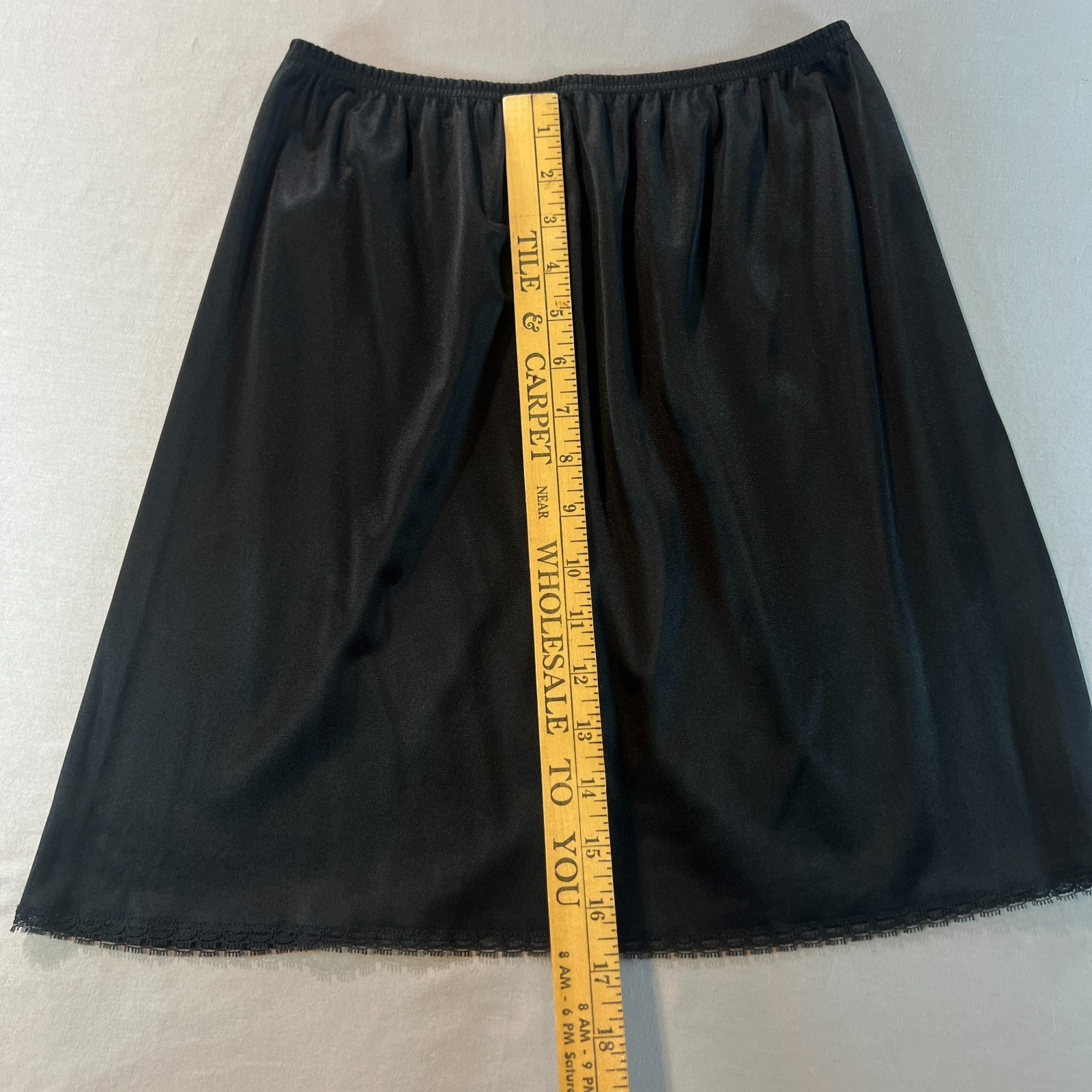 как выглядит Vintage Vanity Fair Half Slip Black Nylon Lace Hem Size Small S 18 Length USA M фото