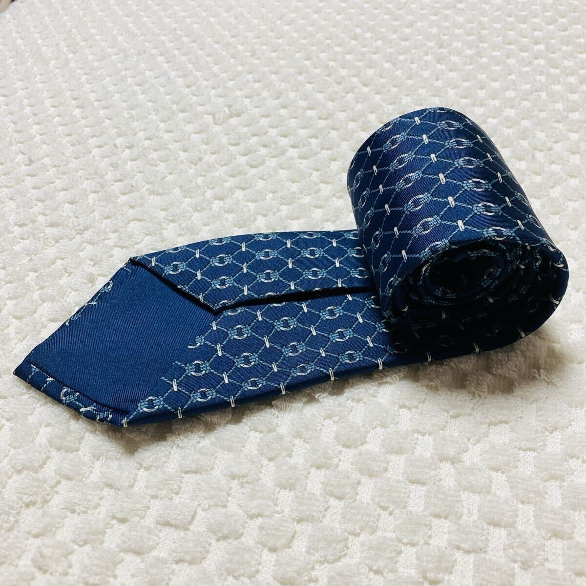 как выглядит Excellent condition HERMES Tie rope metal checkered 100 silk made in France 622O фото