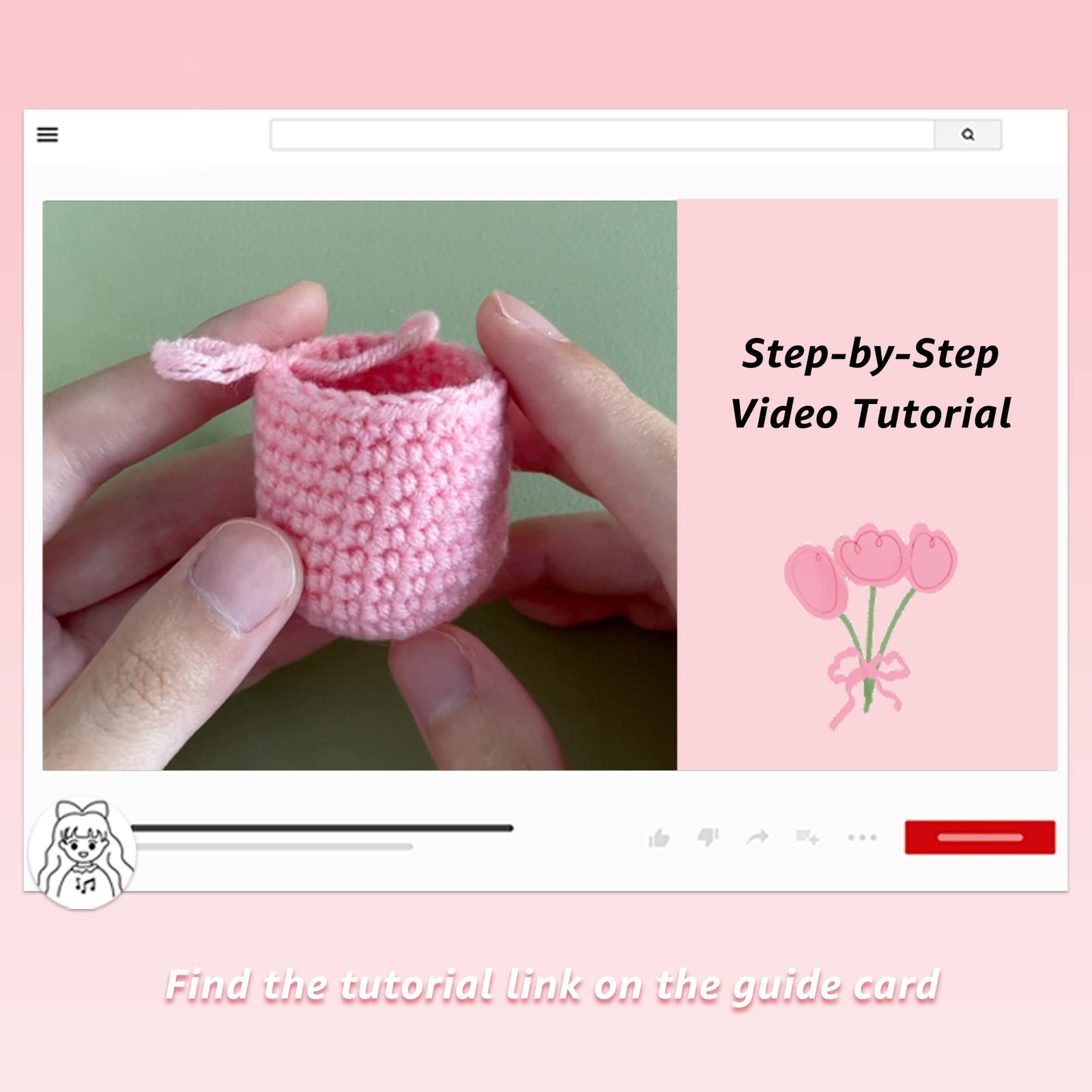 Flower Crochet Kit Tulip Flowerpot Step-by-Step Video Tutorial for Adults...