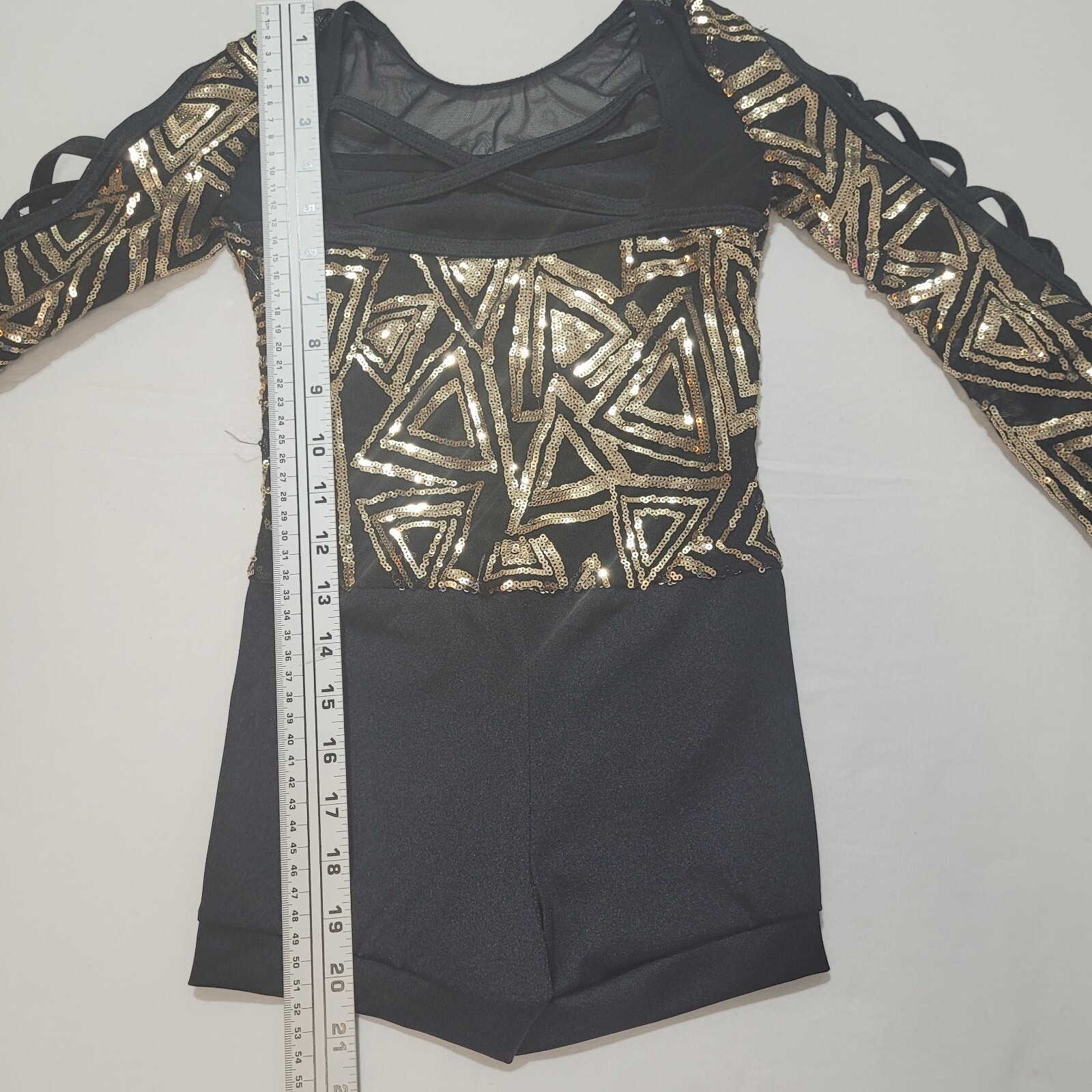 как выглядит 3 Piece Weissmann Dance Costume Dress Intermediate Child Black Gold Sparkling фото