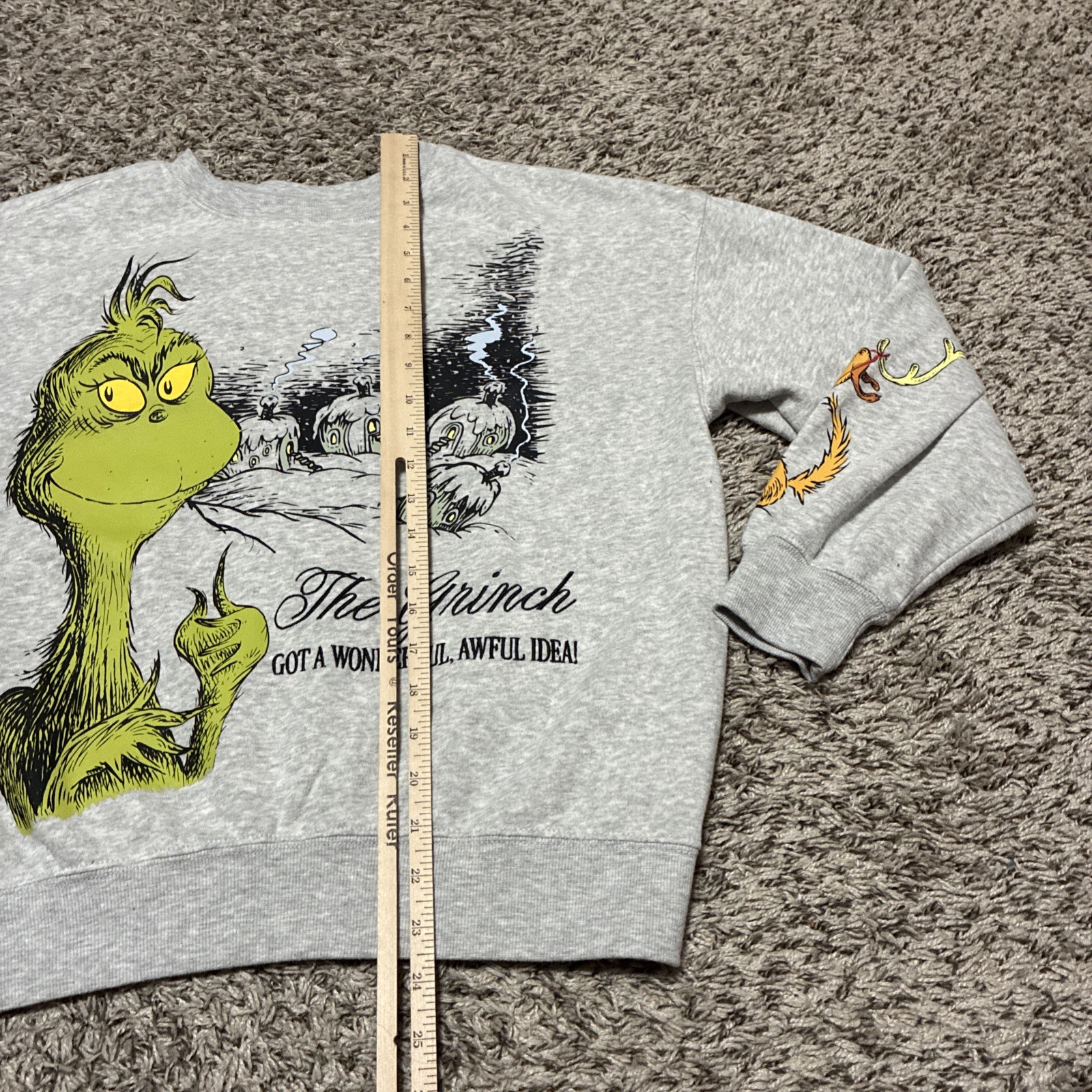 как выглядит The Grinch Sweatshirt Size Small Pullover Gray Dr Seuss фото